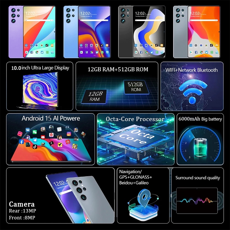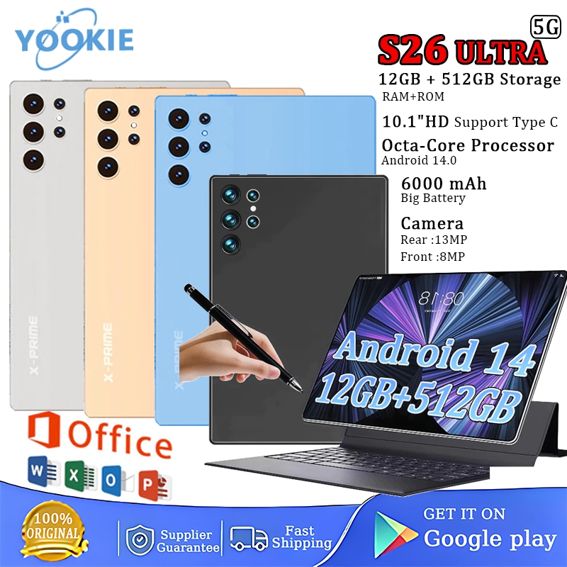 Original S26 Ultra 5G Tablet 12+512GB 6000mAh Dual SIM Dual Camera Android Tablet with Keyboard Pen
