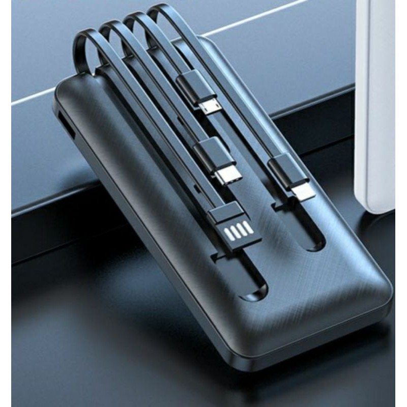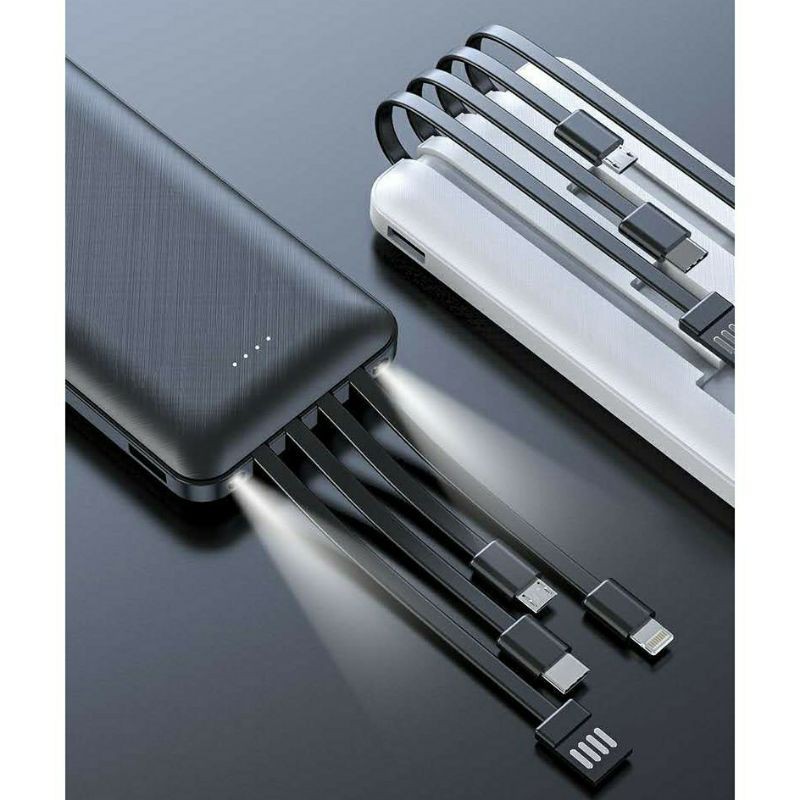 Original Slim Power Bank 20000mah 30000mah Portable Fast Charging Built in 4 Cables Torch PowerBank