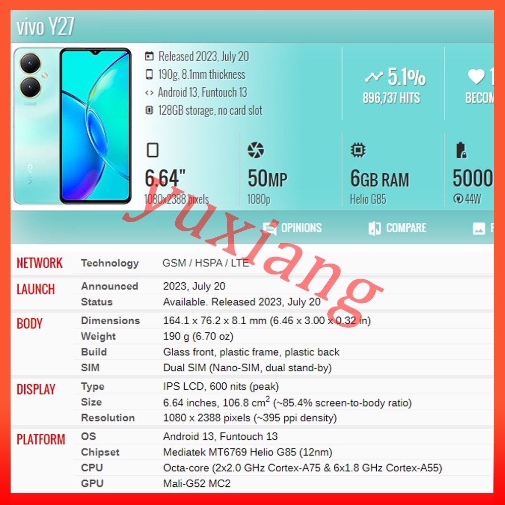 OEM For Vivo Y27 Y27s LCD Display Touch Screen Replacement