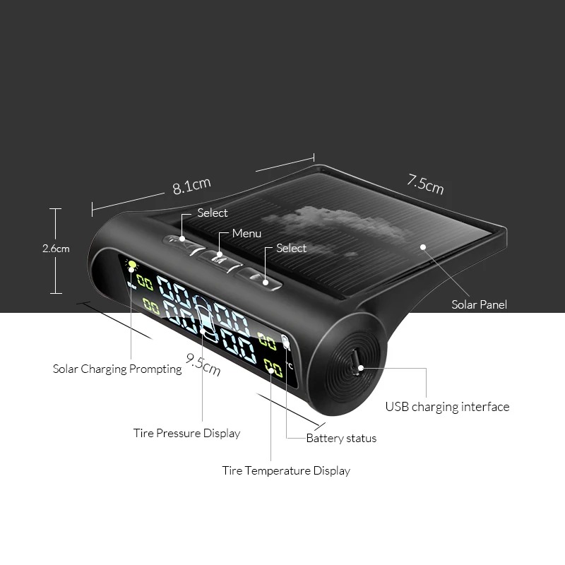 Original high-end tire pressure sensor LCD display parameters Smart TPMS Car Tire Pressure Alarm Monitor System 4 Sensors Display Solar Intelligent Tyre