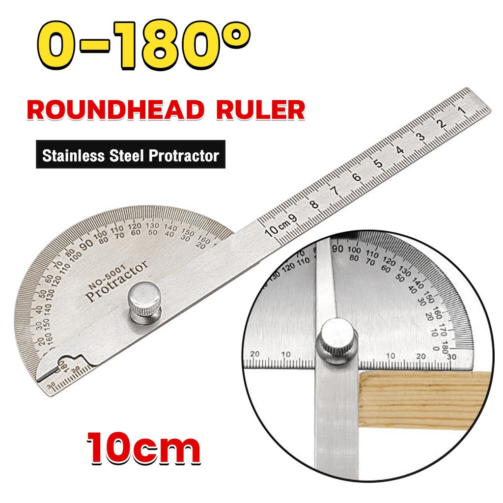 Orisso Stainless Steel Protractor Adjustable Roundhead Ruler 180 Degree Rotary Measuring Rule