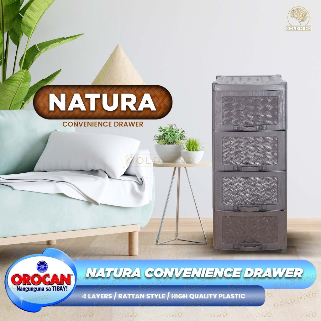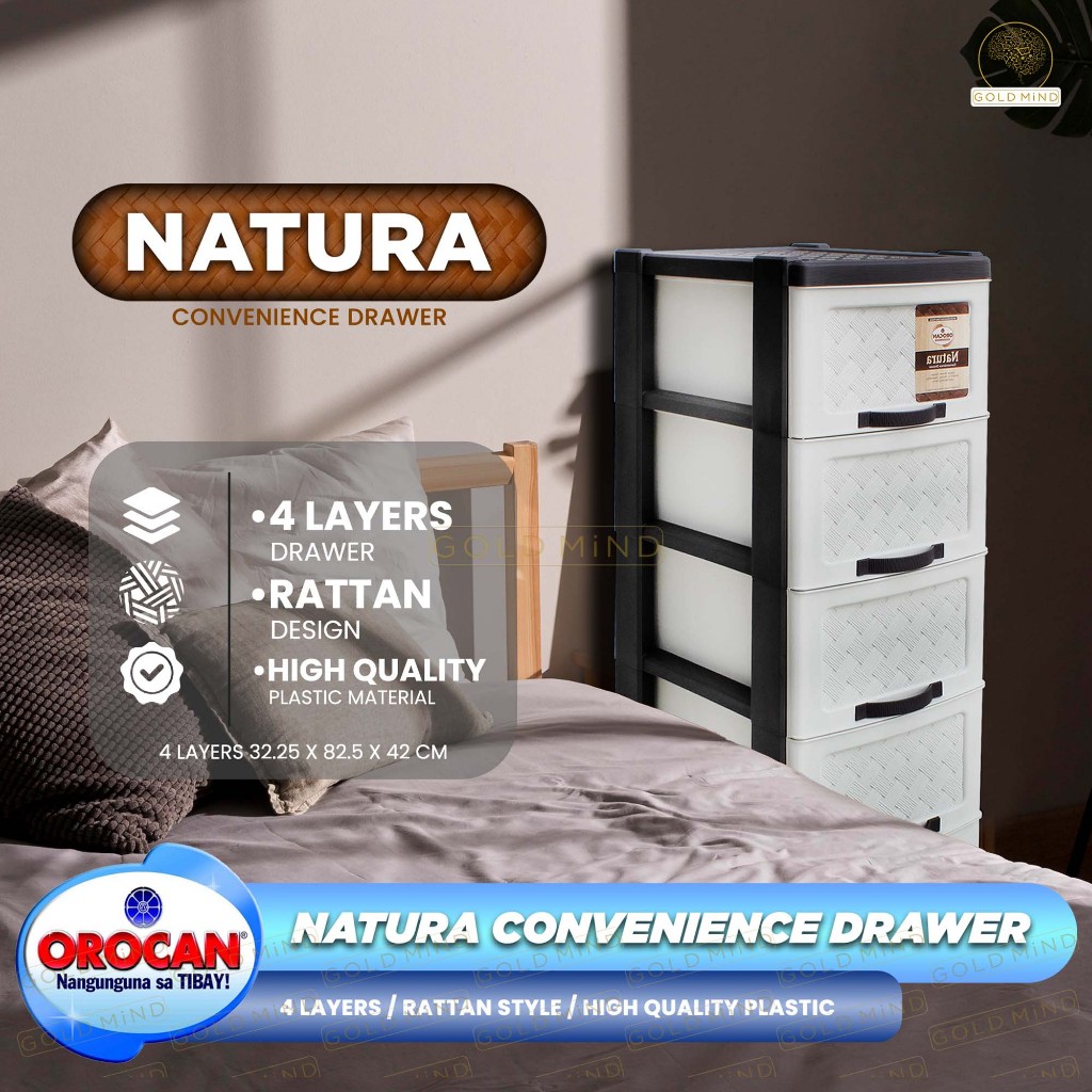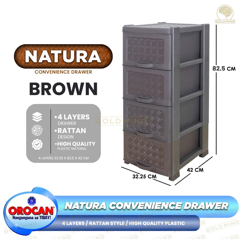 Orocan Natura Drawer 4 Layers Available In Beige & Brown Rattan Elegant Style -Gold Mind