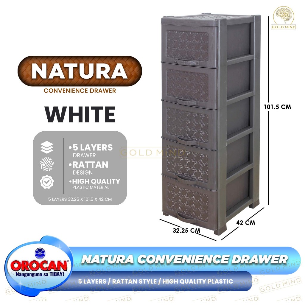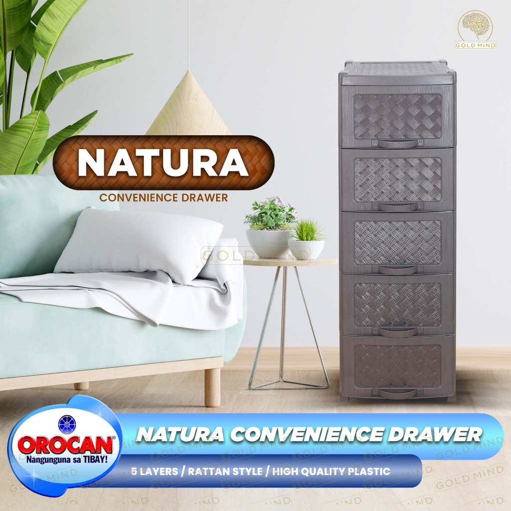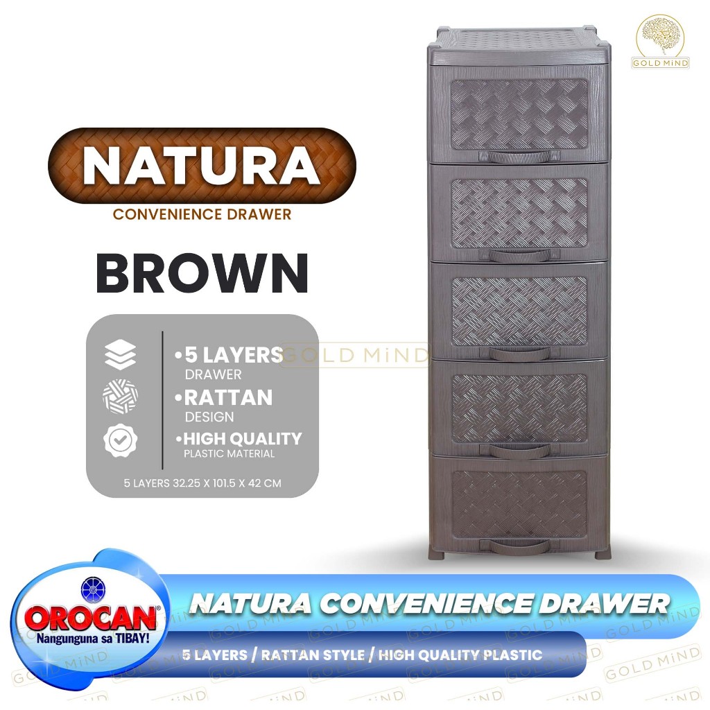 Orocan Natura Drawer 5 Layers Available in Beige & Brown Rattan Elegant Style -Gold Mind