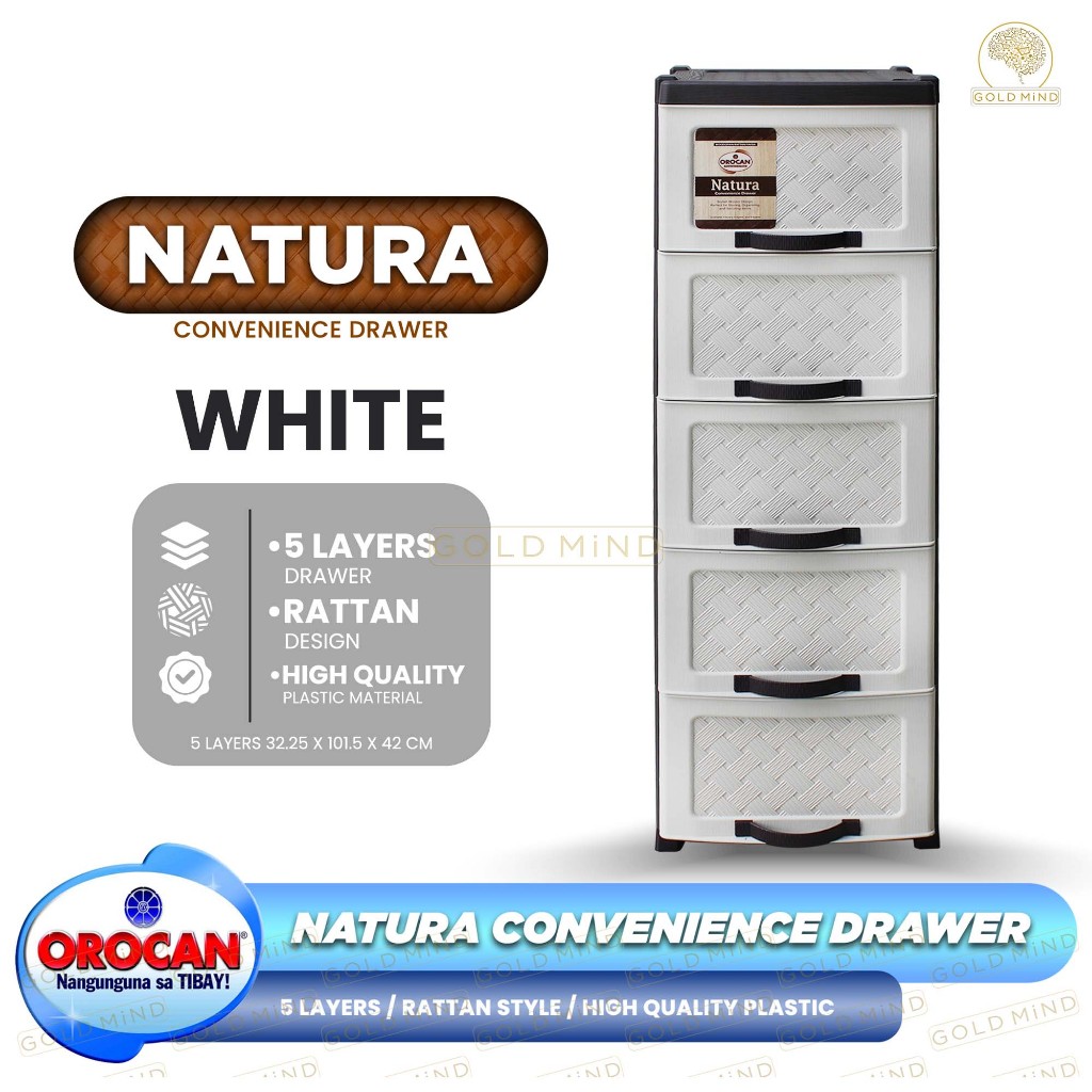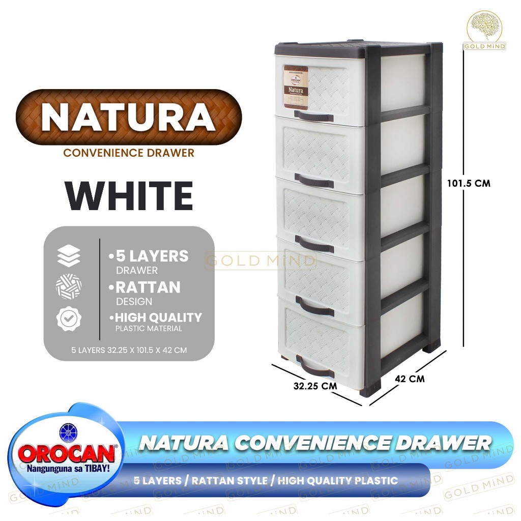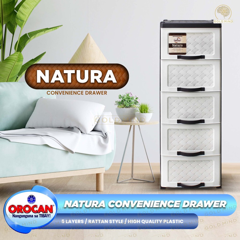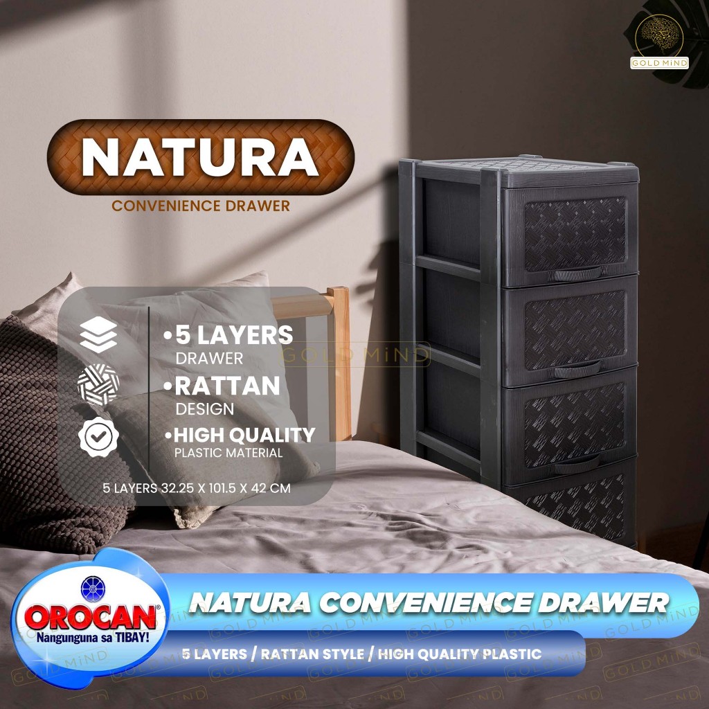 Orocan Natura Drawer 5 Layers Available in Beige & Brown Rattan Elegant Style -Gold Mind