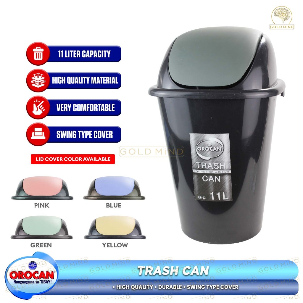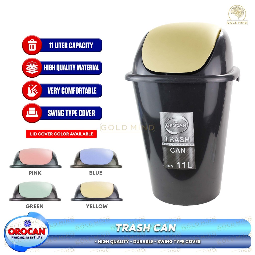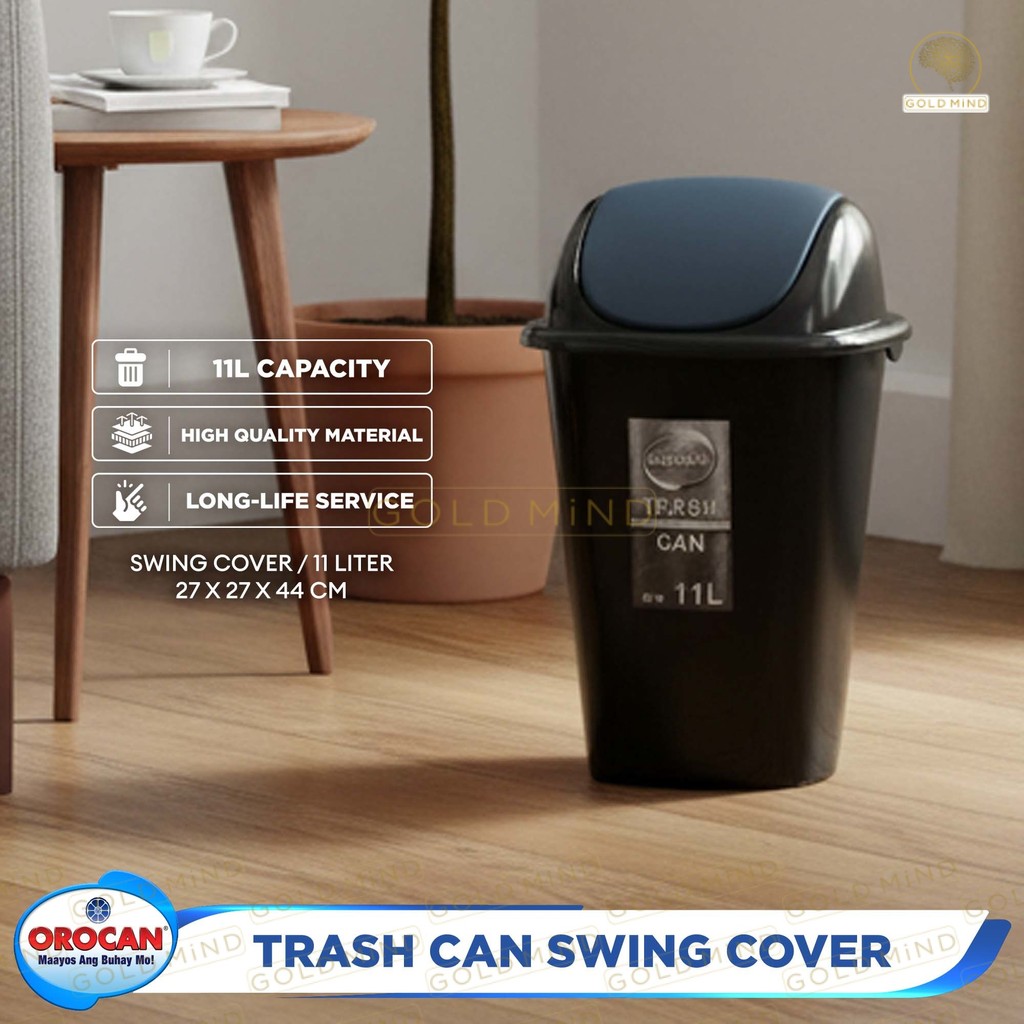 Orocan Trash Can with Swing Cover / Trash Bin Garbage Can 11 Liters -Gold Mind