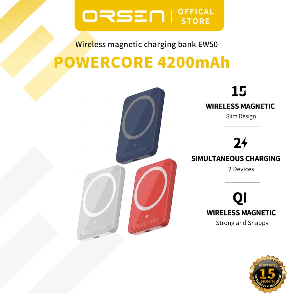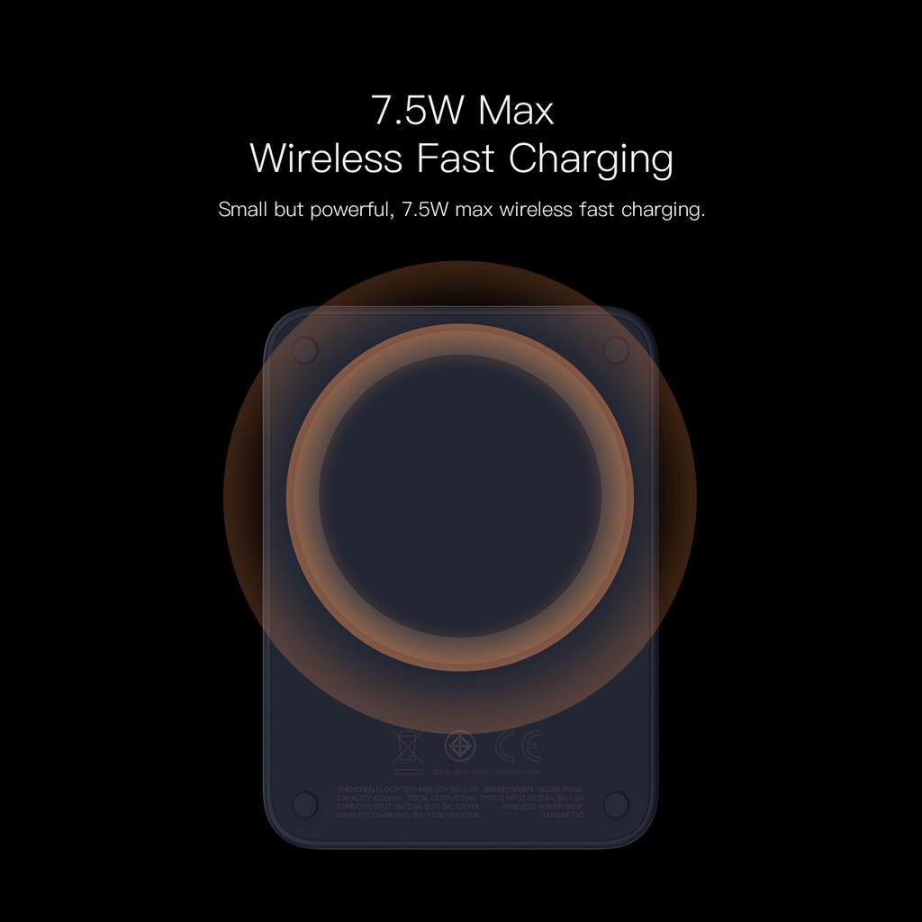 Orsen EW50+MagCharge Magnetic Ring 4200mAh Wireless Backup Battery Magnetic Power Pack