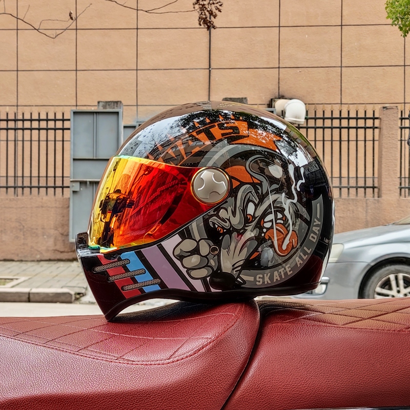 Orz3c Certified Orz Retro Harley Motorcycle Helmet Men and Women Full Cover Four Seasons Cruise Full Face Helmet Can Be Installed Bluetooth Cool