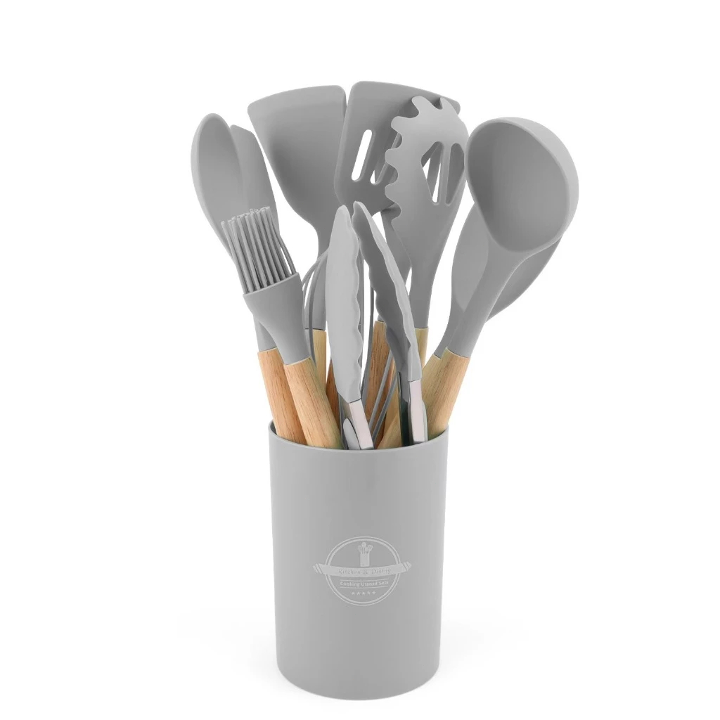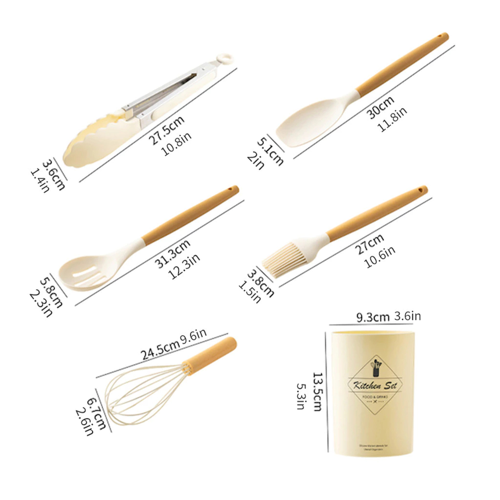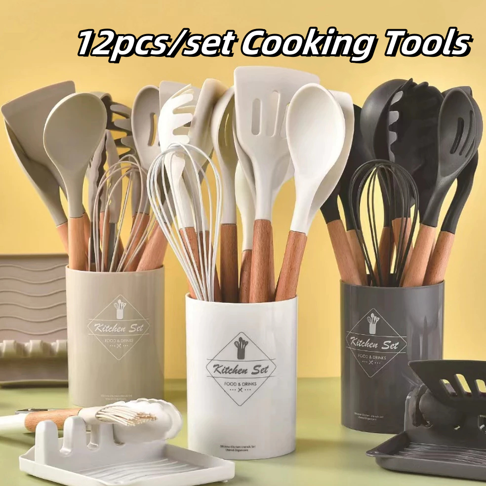 Silicone kitchen utensils set Spatula For Non Stick Pan Shovel Wooden Handle Cooking Tools Set