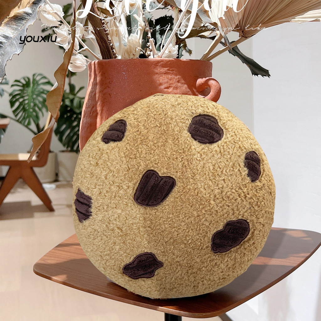 YOU- 28/45cm Plush Seat Cushion Lovely Simulation Biscuit Shape Fluffy Sofa Pillow Hip Protective PP Cotton Filling Home Office Chair Car Seat Buttocks Cushion Home Decoration