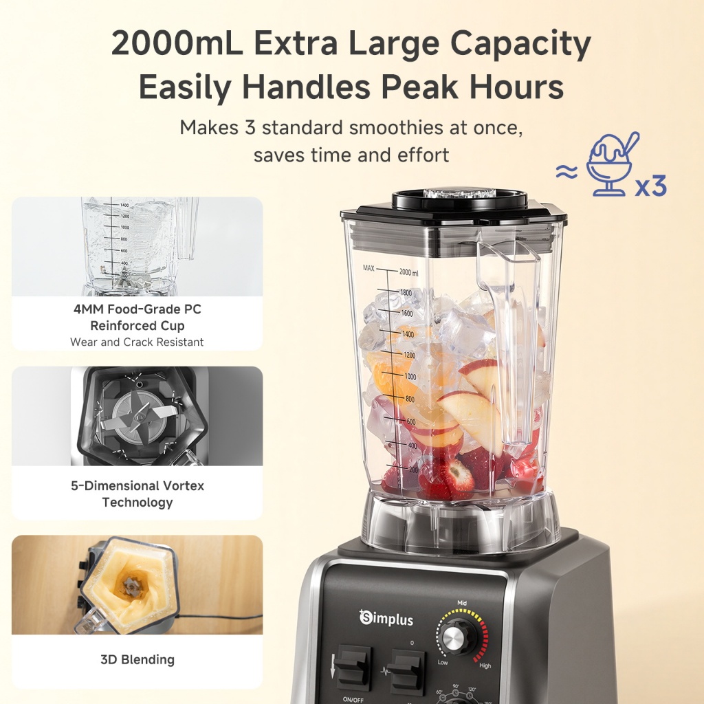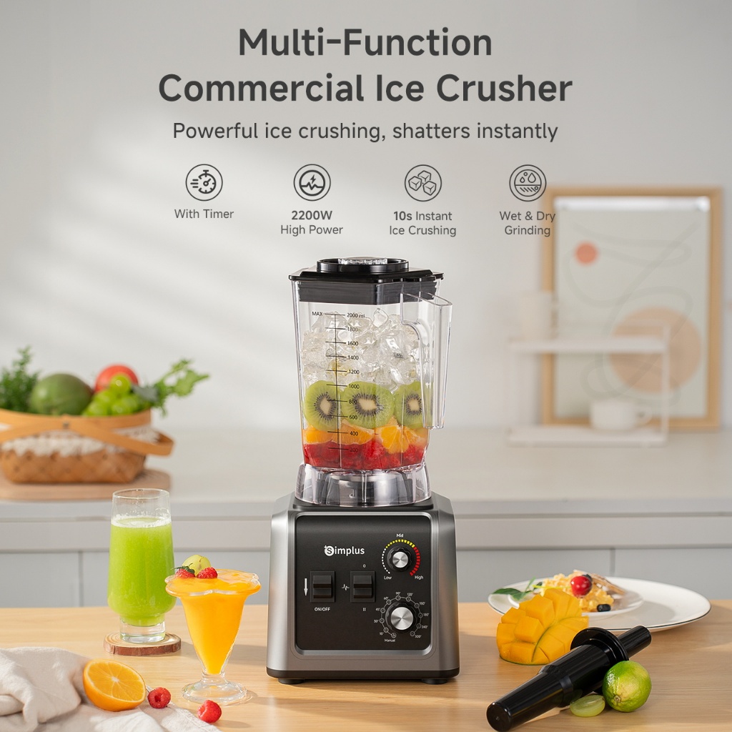 Simplus Commercial Blender 2000mL Large Capacity Powerful Ice Crushing Smoothie 304 Stainless Steel