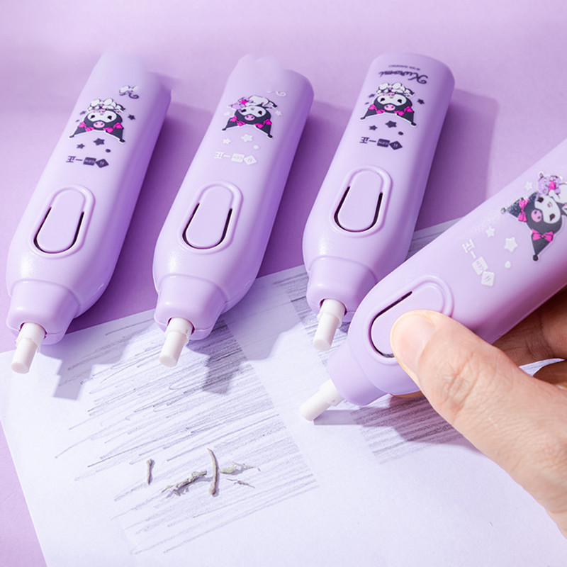 Ossayi Kawaii Kuromi Mechanical Electric Eraser for Sketch Cute Kneaded Erasers for Kids School Office Supplies Rubber Sketching Drawing Painting Eraser