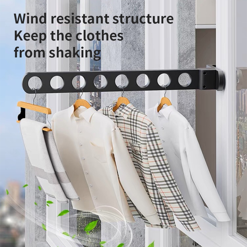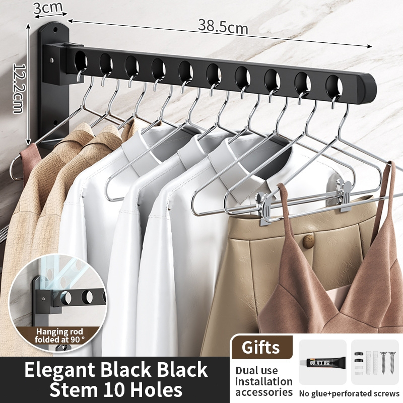 Ottlife 10 Holes Stainless Steel Clothes Folding Hanging Rod Multifunction Shrinkable Folding Wall Rack Balcony Hanger for Bathroom Storage Clothes Hanger