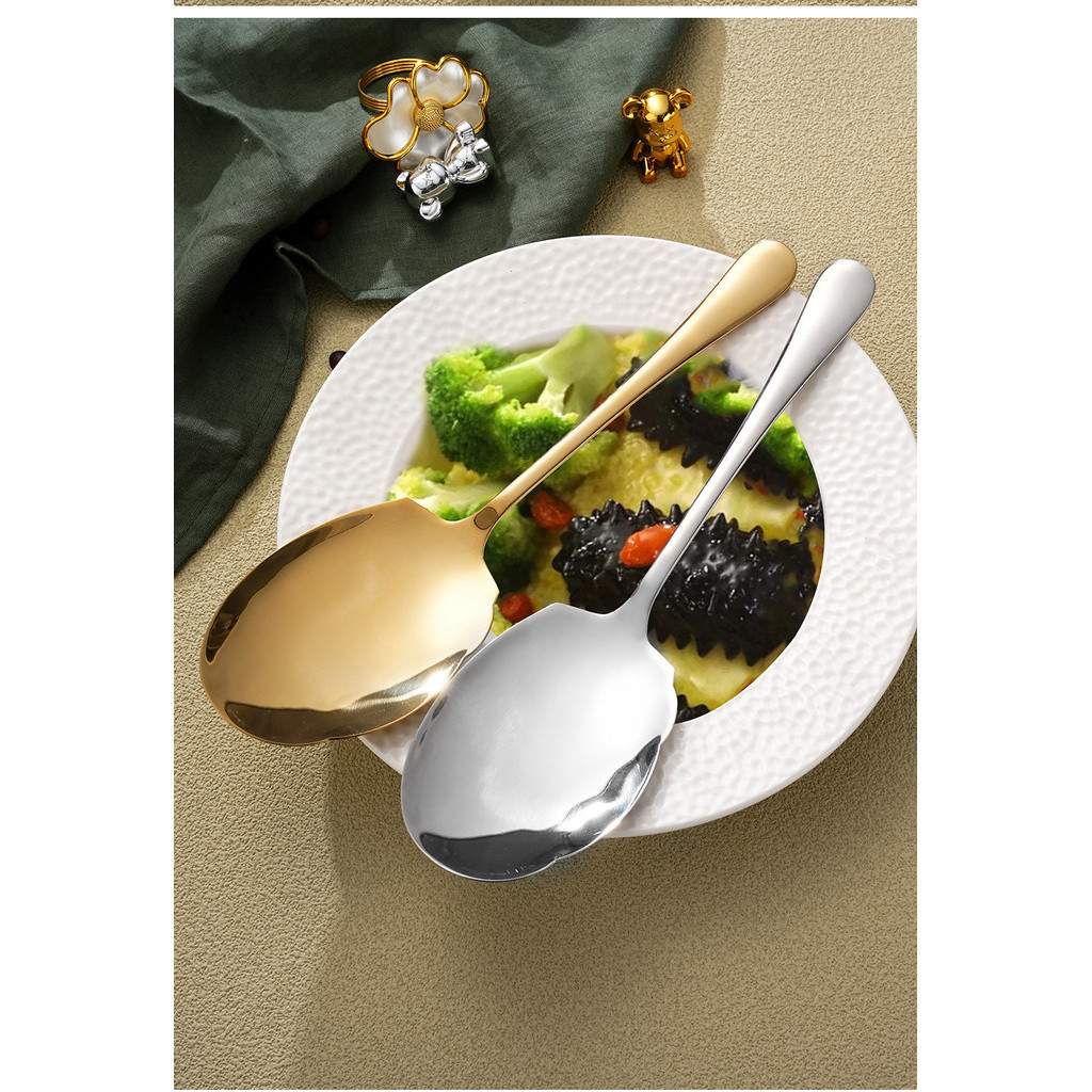 Oukeai 304 Stainless Steel Public Spoon Buffet Serving Spoon Hotel Restaurant Serving Spoon Stainless Steel Large Soup Spoon Serving Tableware