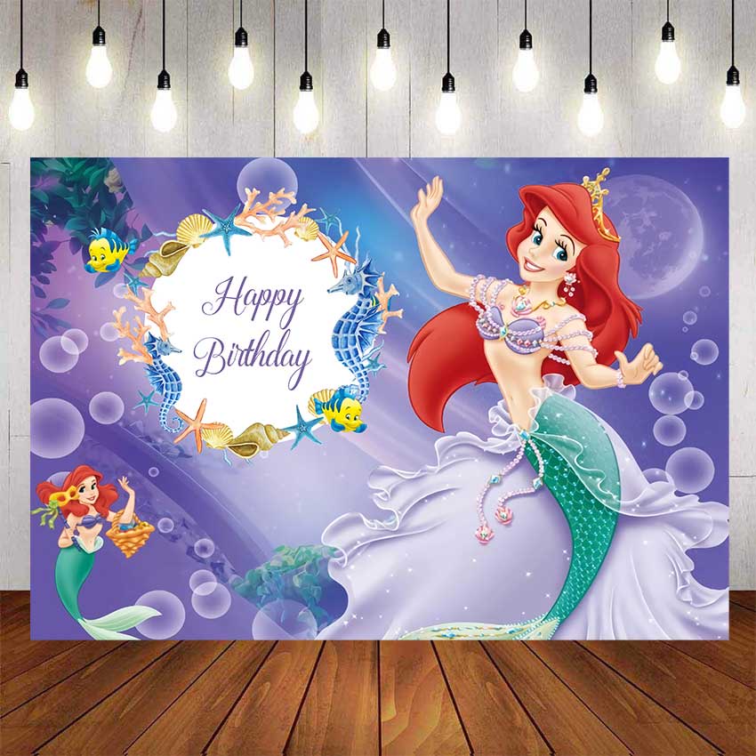Our little Mermaid Princess Birthday Backdrop For Photography Baby Shower Kids Children Girls Undersea Background Birthday Party Decor Custom Name Photo