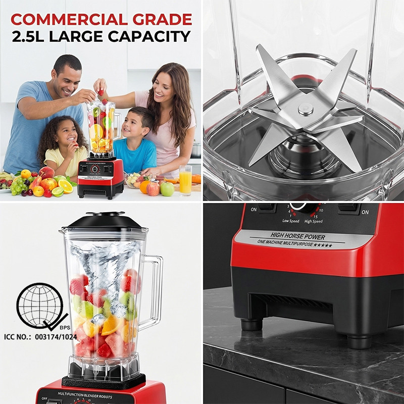 2.5L Heavy Duty Commercial Blender Stationary Mixer Food Processor Ice Smoothies for Kitchen High Power Juicer Blender