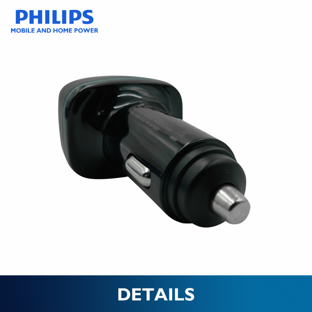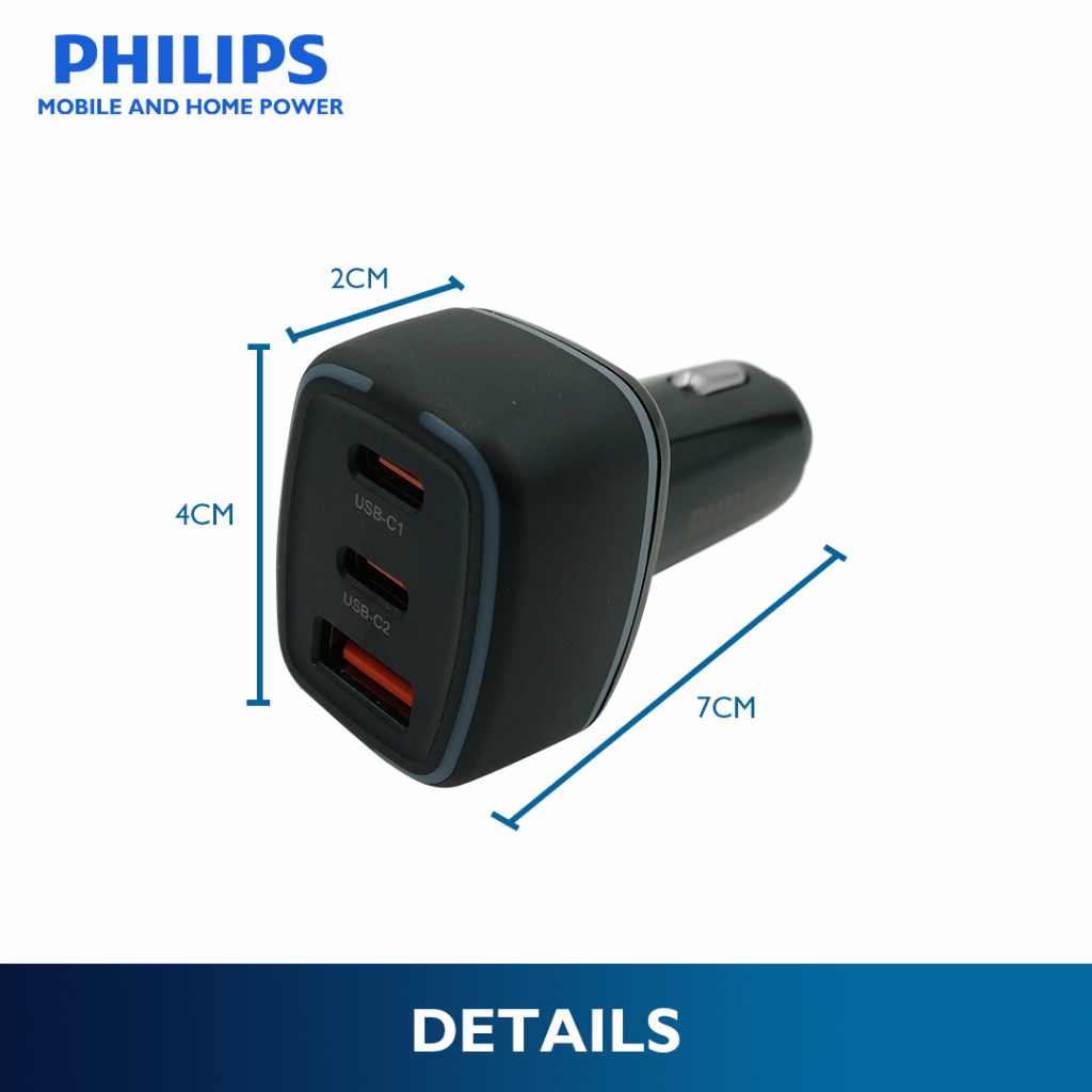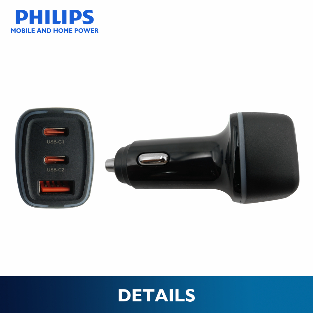 Philips Car Charger 45W 3 Port Fast Charger Car Adapter with PD 20W + PD 45W