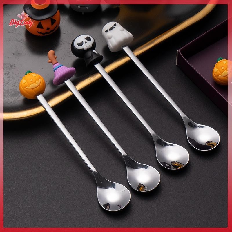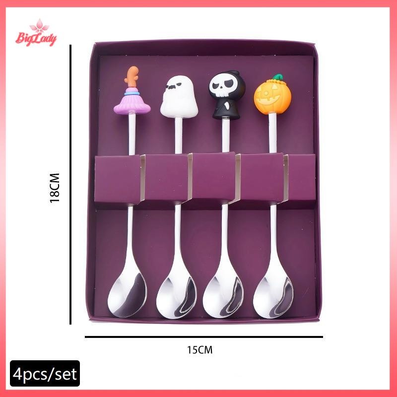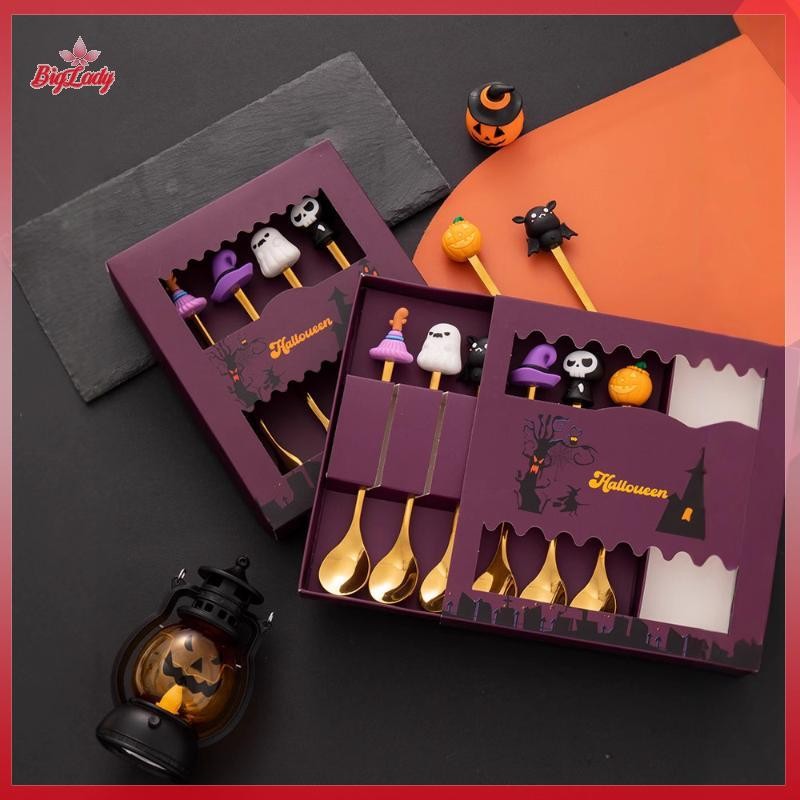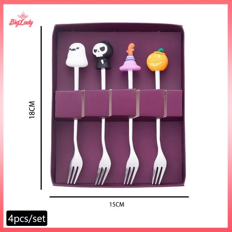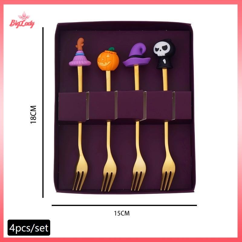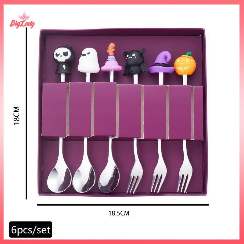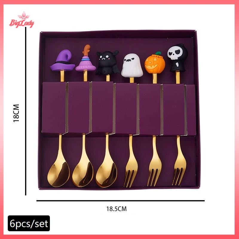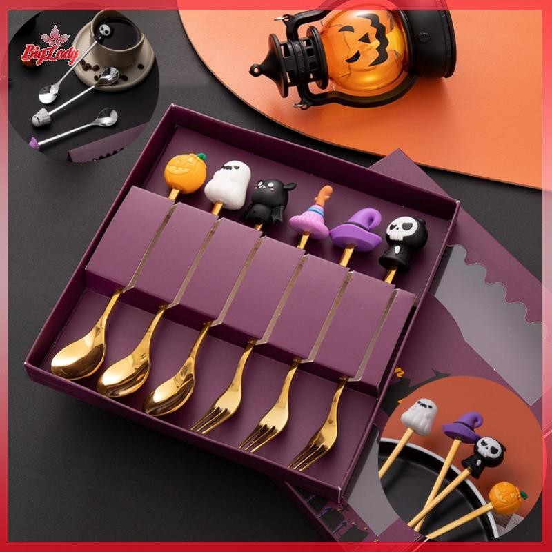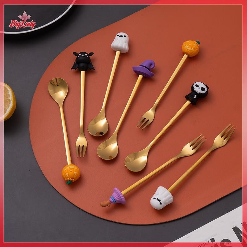 UVLN> Halloween Tableware Stainless Steel Coffee Spoon Halloween Dessert Spoon Fruit Fork Theme Party Tableware Set new