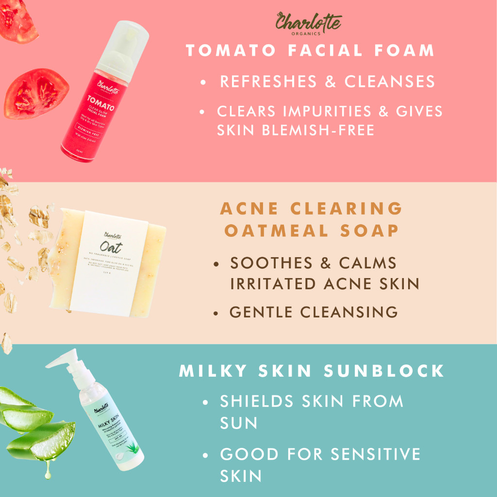(3-Step&Py.Gentle)xN}Acne Clearing Skincare Face Set + Free Soap Holder )}Fj=Sensitive(zc|Skin=wz(A
