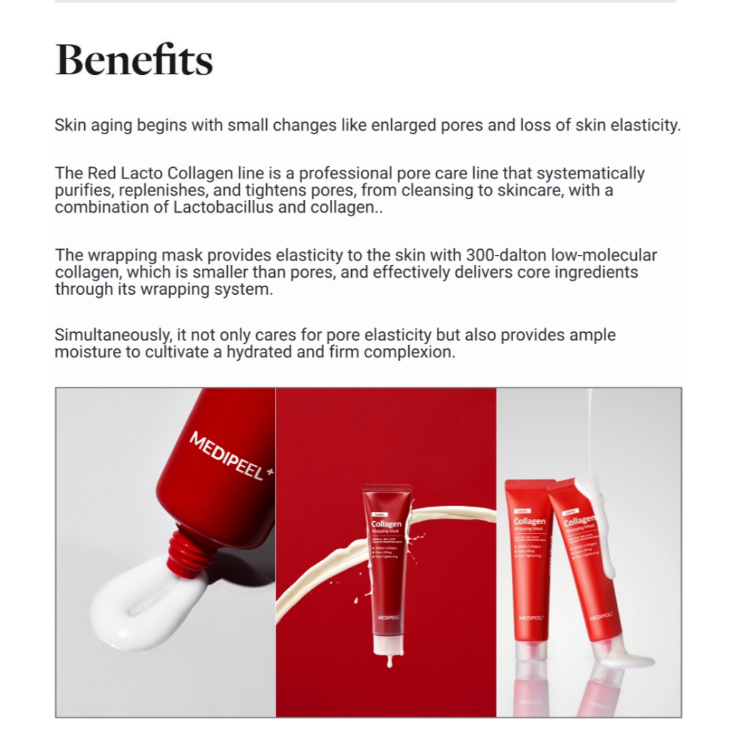 [MEDIPEEL]RED LACTO COLLAGEN WRAPPING MASK 70ml, Glowy, Skin Elasticity, Hydrating,Peel-off Mask, Pore Lifting and Minimizing, Korean Glass Skin