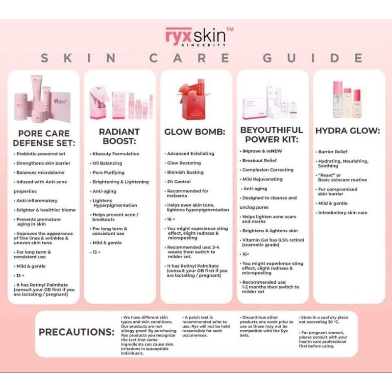 RyxSkin Sincerity Rejuvenating Facial Care Sets - power kit, glow bomb, pore care, radiant set