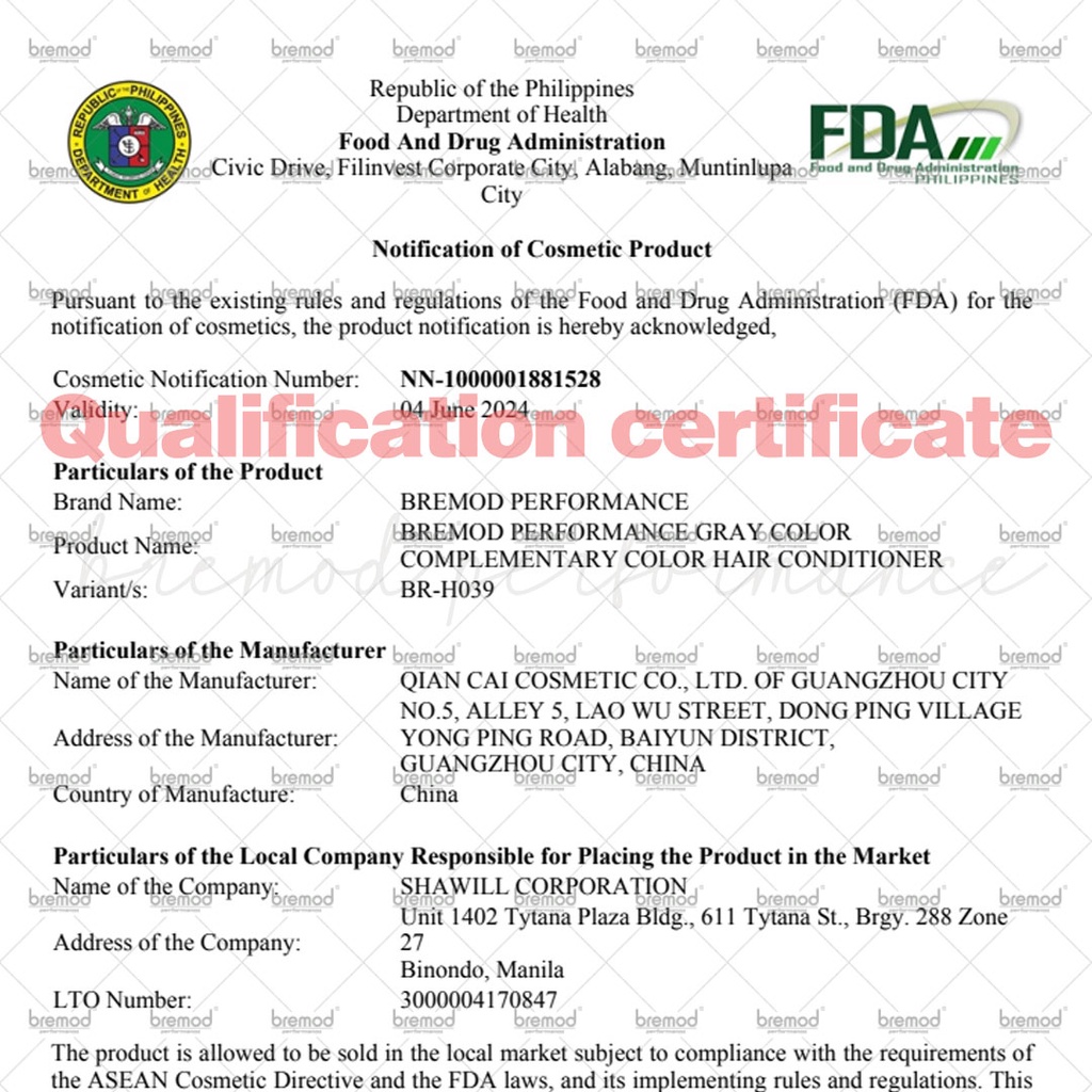 Bremod Hair Gray Color Supplementary Cream 100ml Conditioner Pigment Nourish Locking Colors BR-H039