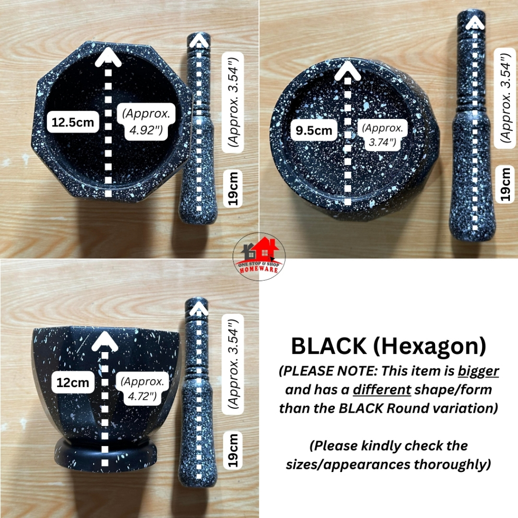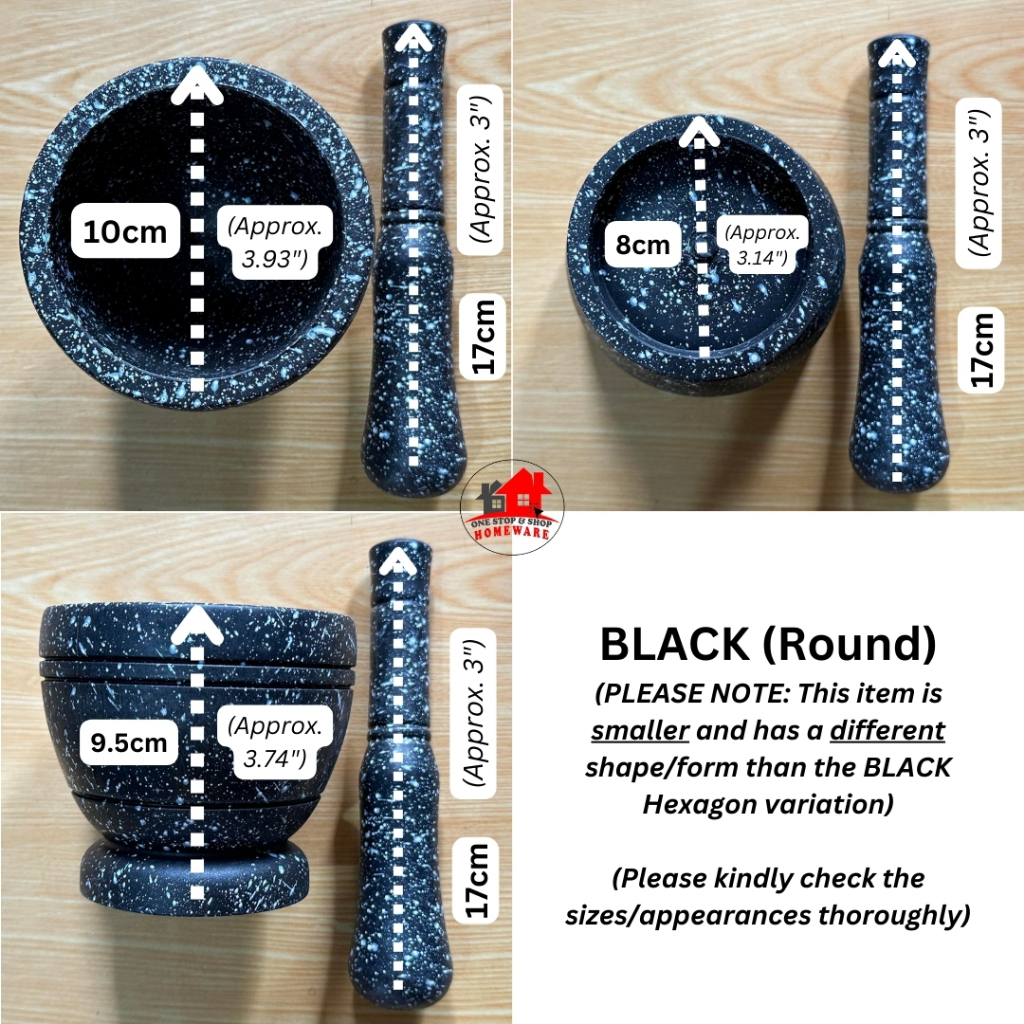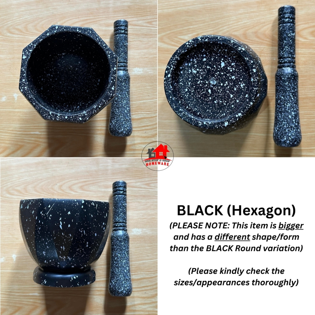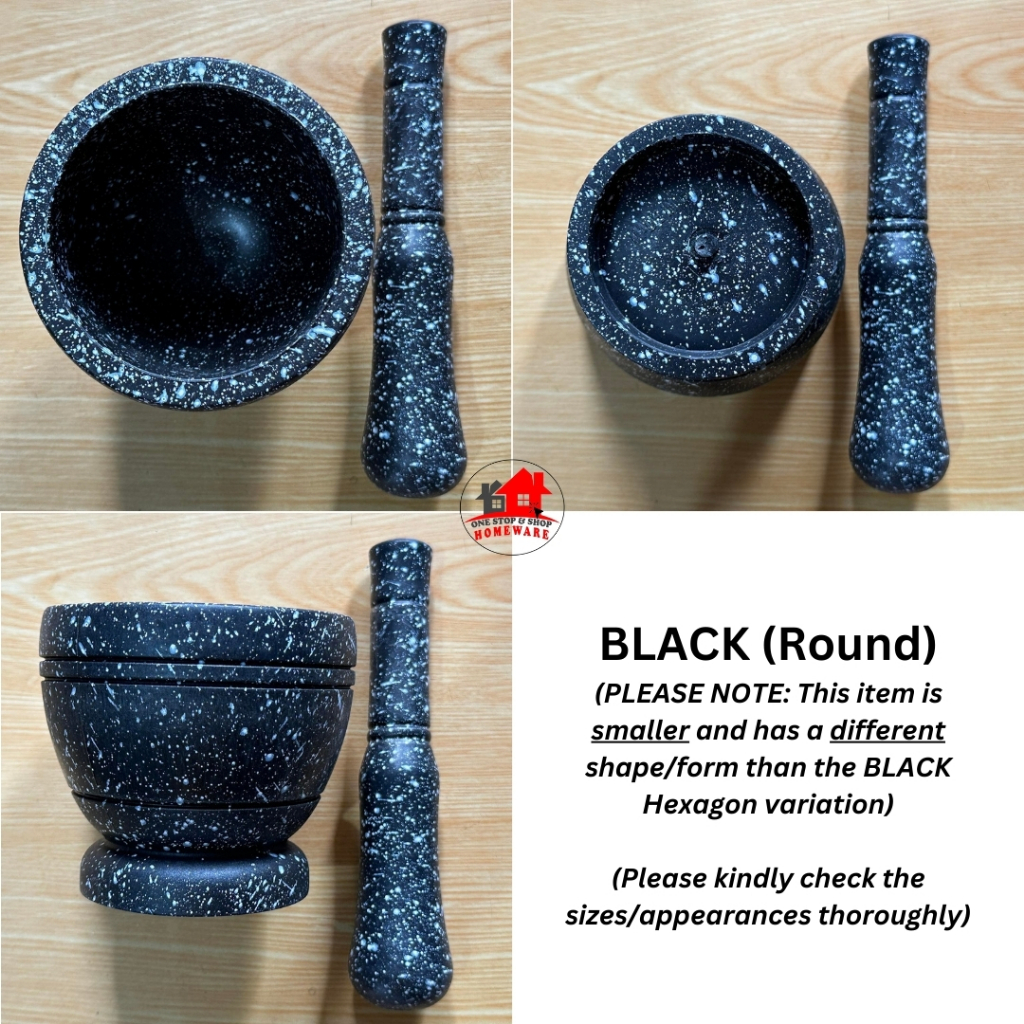 Black Marble-like Plastic Mortar and Pestle or Plastic Almeres in Marble Design