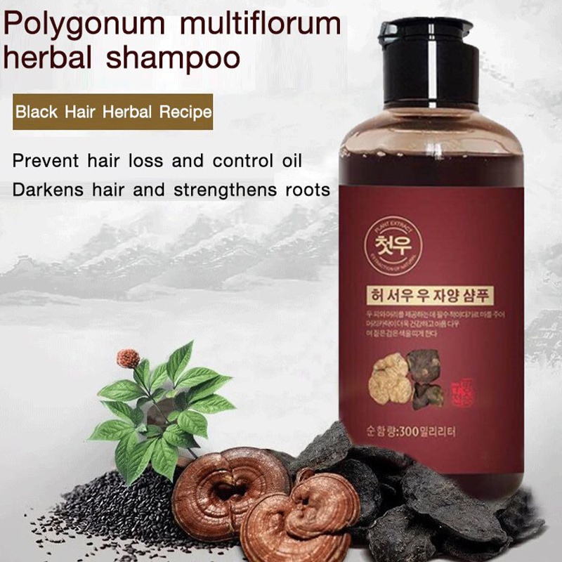 Polygonum multiflorum white to black shampoo Herbal Polygonum Shampoo Effective Grey Hair Remover Anti White Hair Treatmen