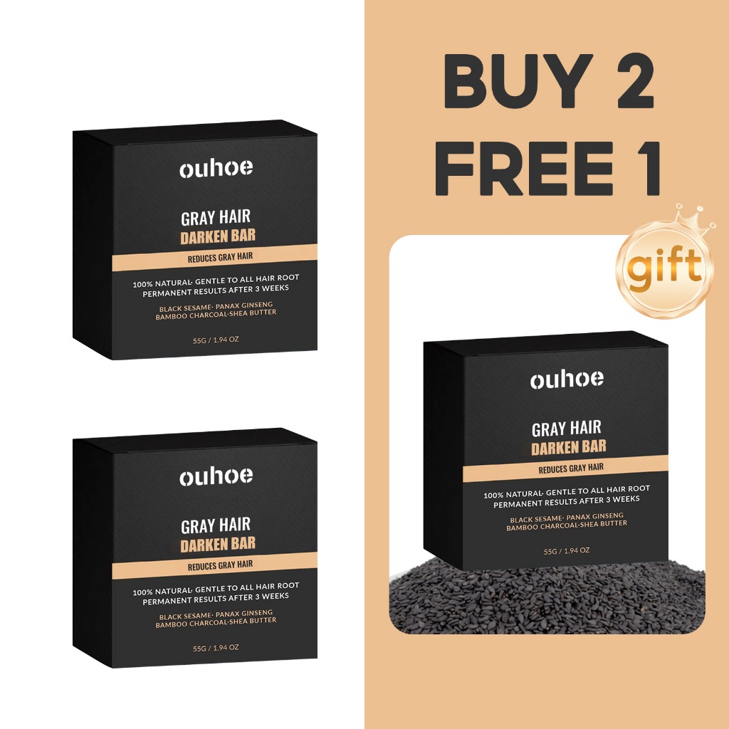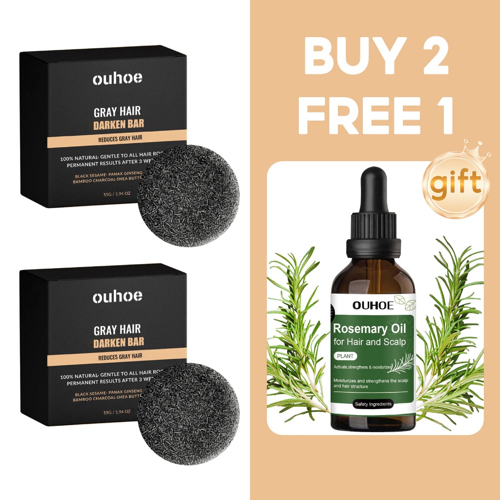 【BUY 2 FREE 1】OUHOE Gray Hair Darken Bar 55g Hair Blackening Shampoo Natural Black Hair Growth Soap
