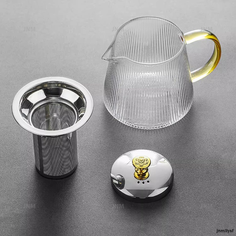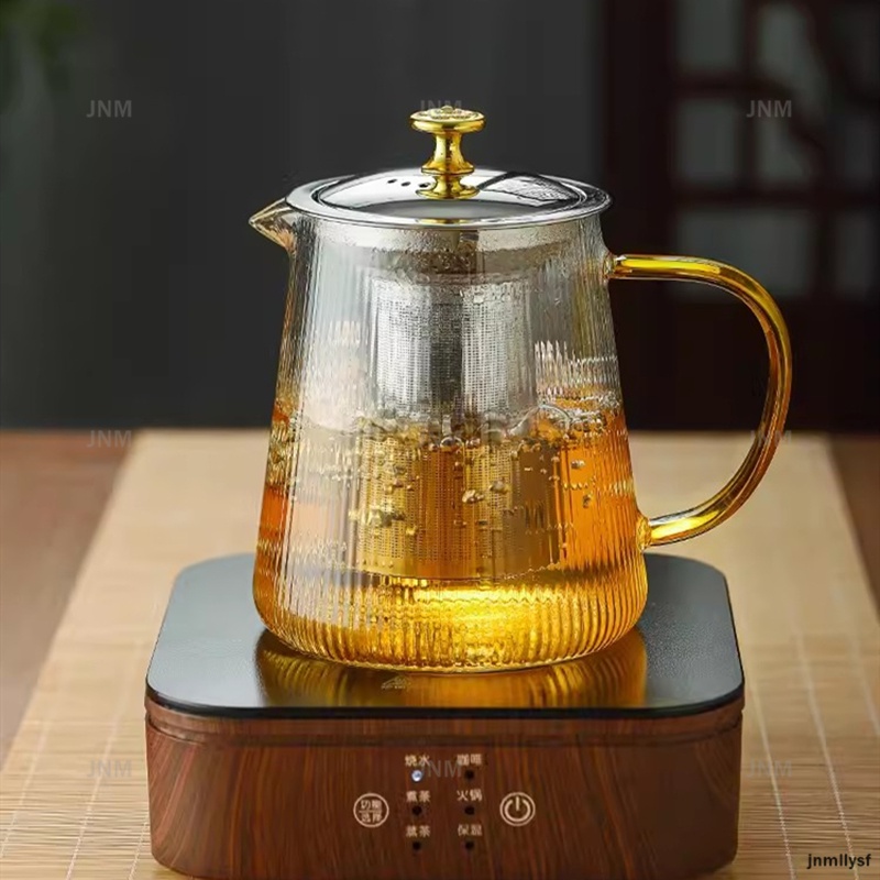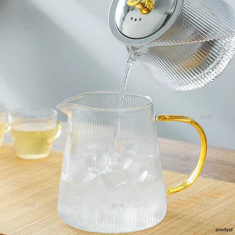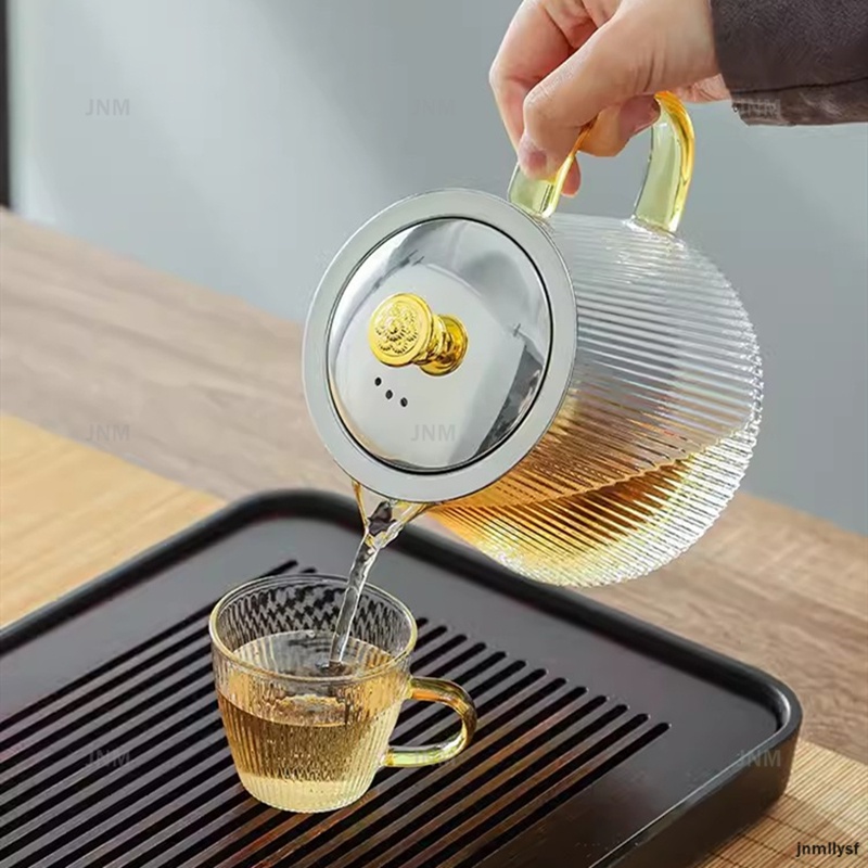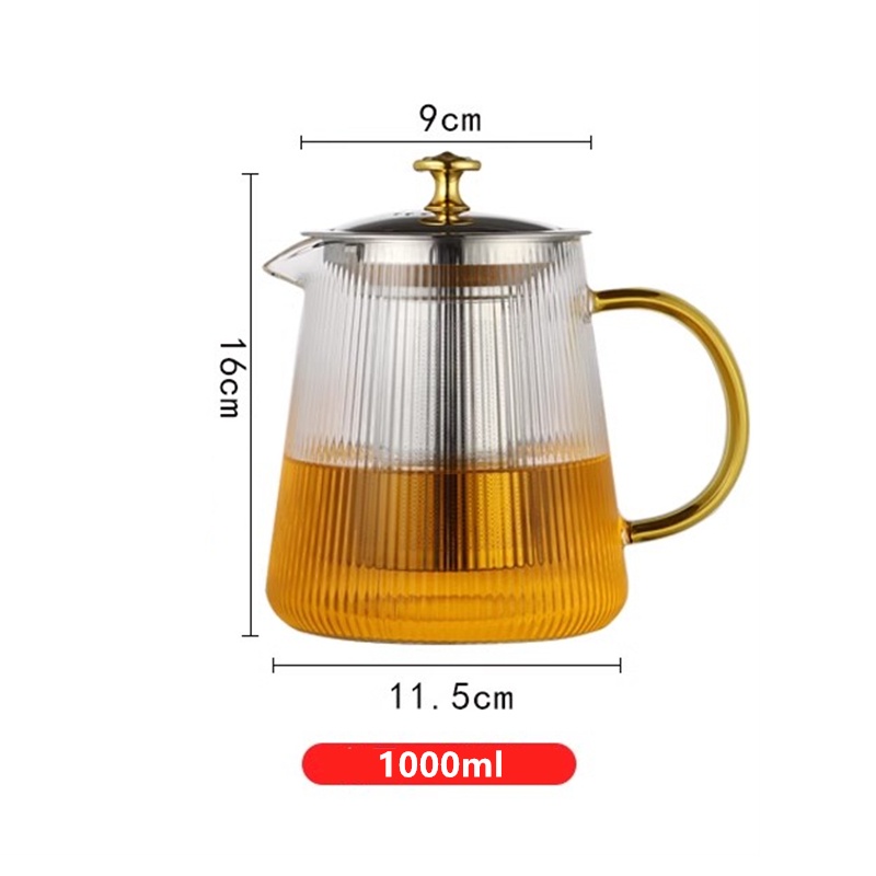 1000ml Vertical Stripe Glass Teapot Transparent Borosilicate Glass Teapot Heat Resistant Flower TeaPot Household Kettle