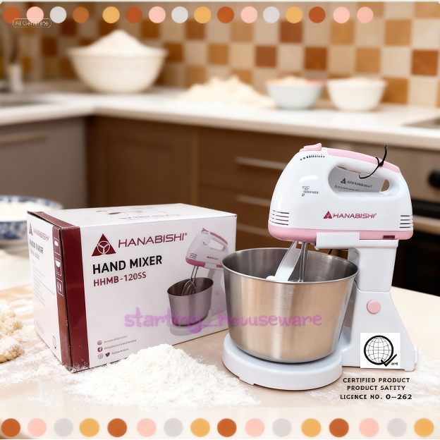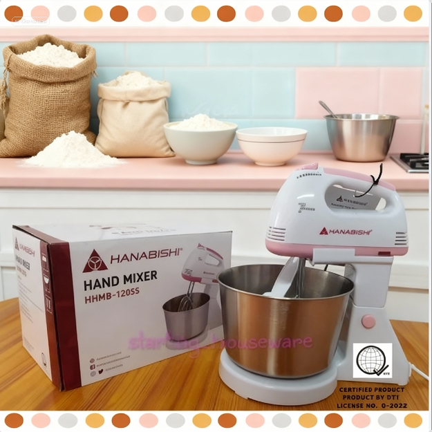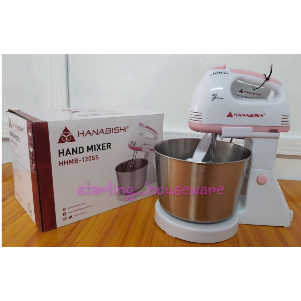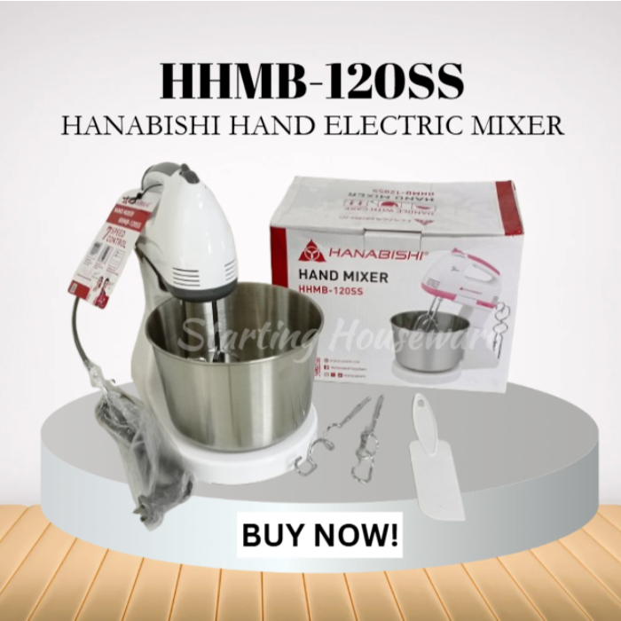 Hanabishi Hand Mixer with Stand & Stainless Steel Bowl ( 7-speed Slim Design ) - HHMB 120SS