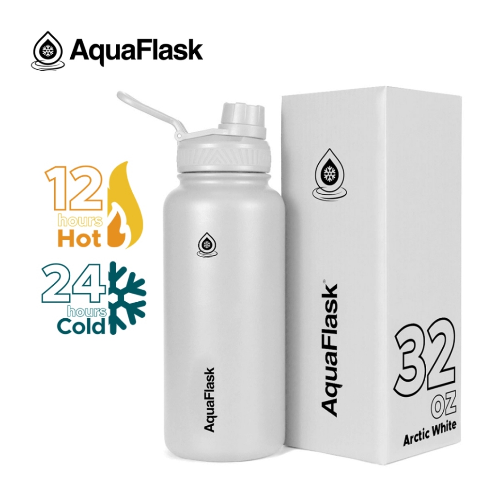 AquaFlask 32oz Wide Mouth with Cap Lid Vacuum Insulated Drinking Water Bottle Aqua Flask