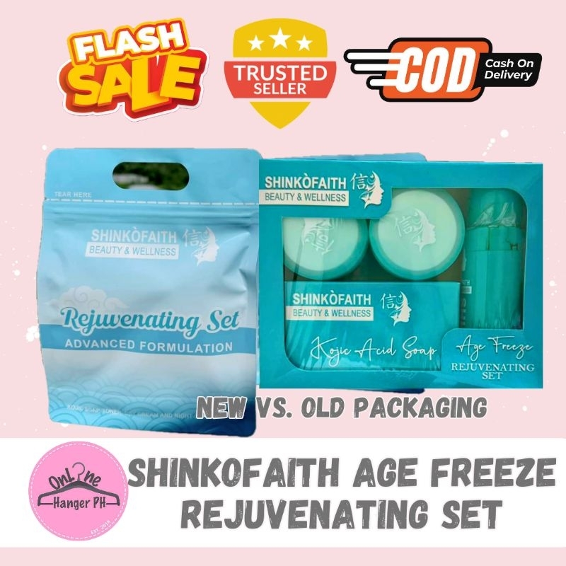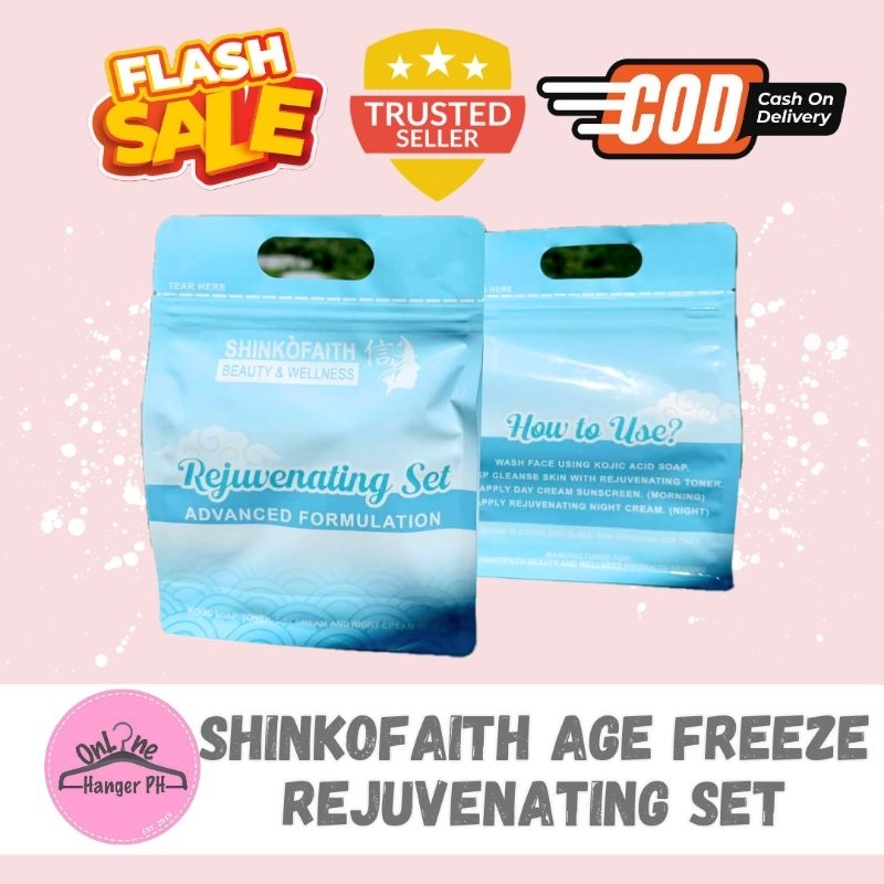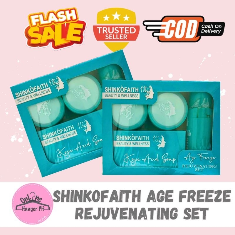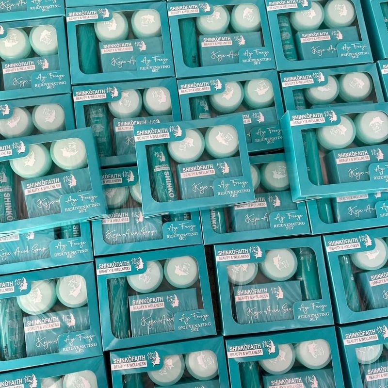 Shinko Faith Age Freeze Rejuvenating Set with Kojic Soap, Rejuv Toner, Day Cream and Night Cream