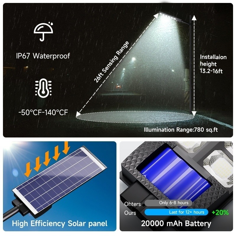 Outdoor Solar Street Light Waterproof Solar Light Motion Sensor Heavy Duty Led Lamp with Solar Panel