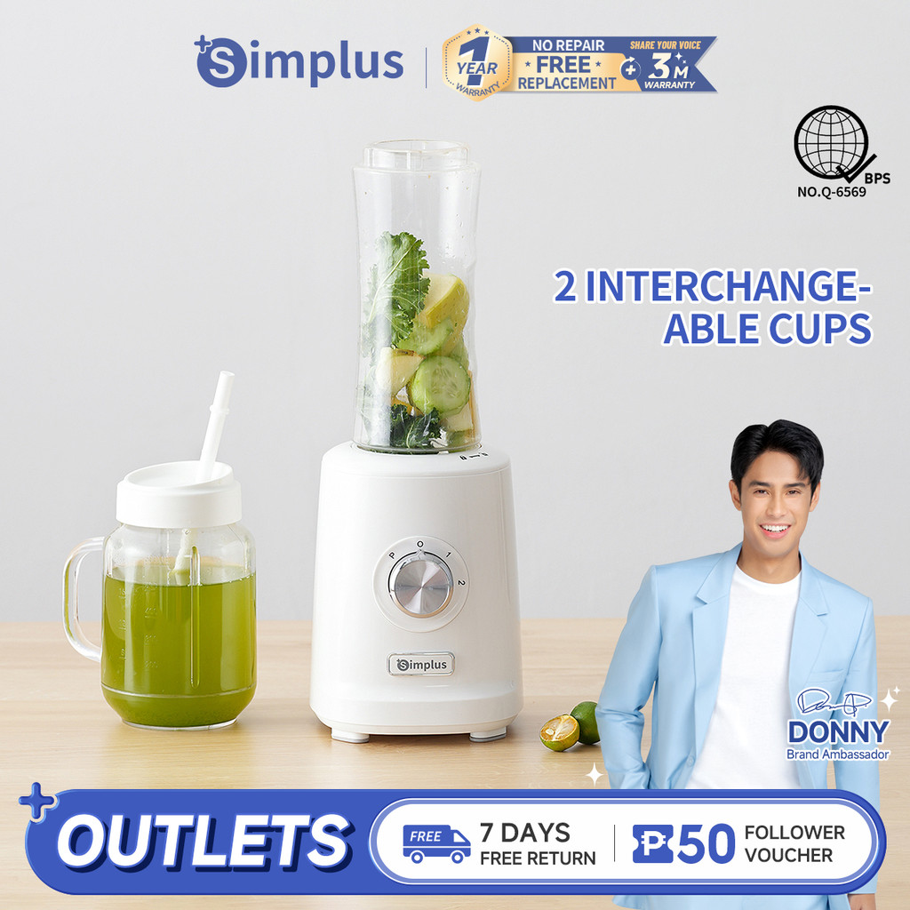 Simplus Blender Multi-functional Food Processor 3 Adjustable Modes 2 Interchangeable Cups