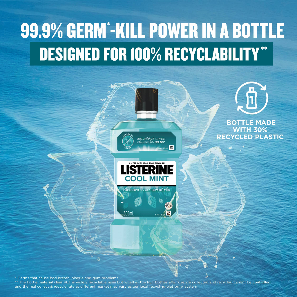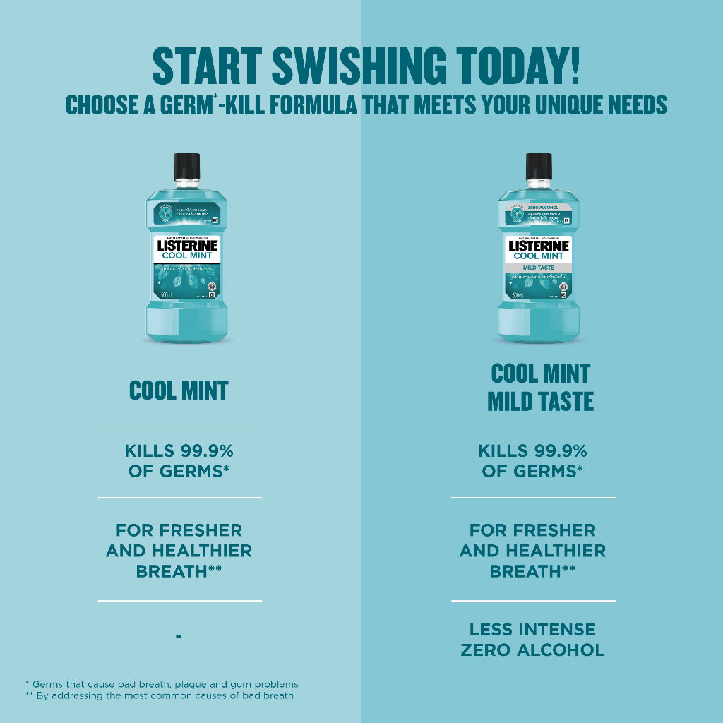 Listerine Cool Mint Zero Mouthwash 500ml : alcohol free mouthwash, mouth wash for bad breath