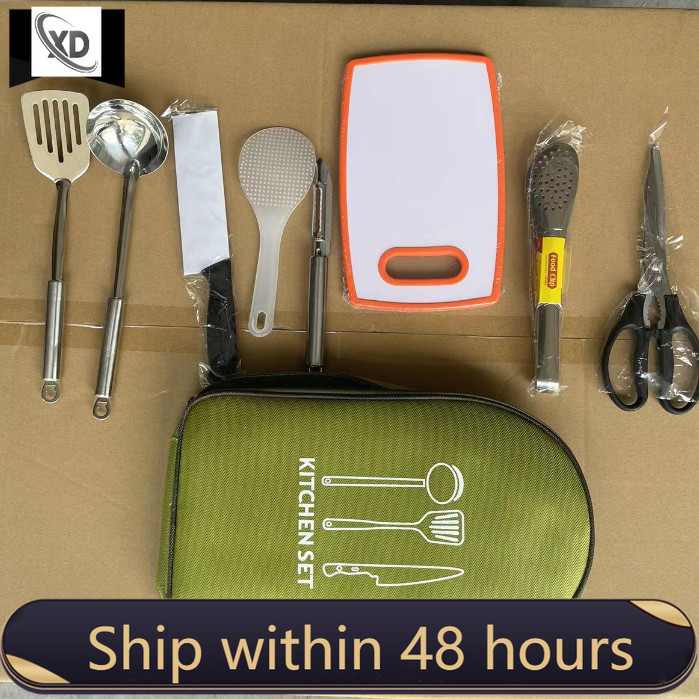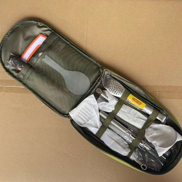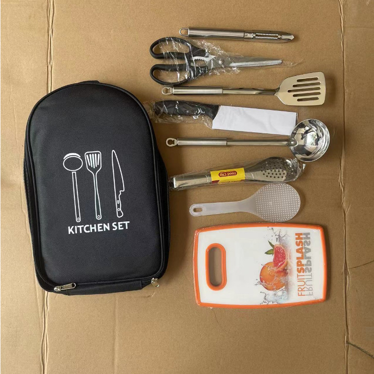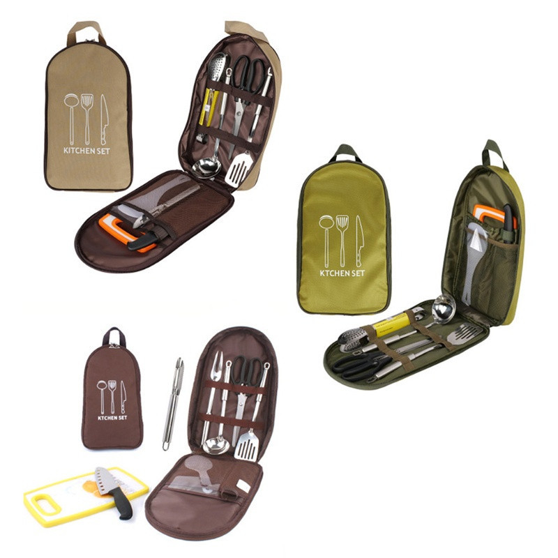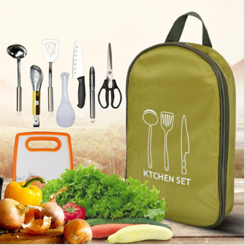 Outdoor camping cooking eight in one set made of stainless steel material with multiple functions