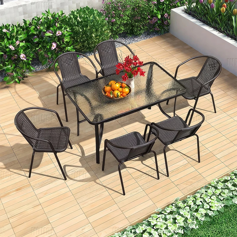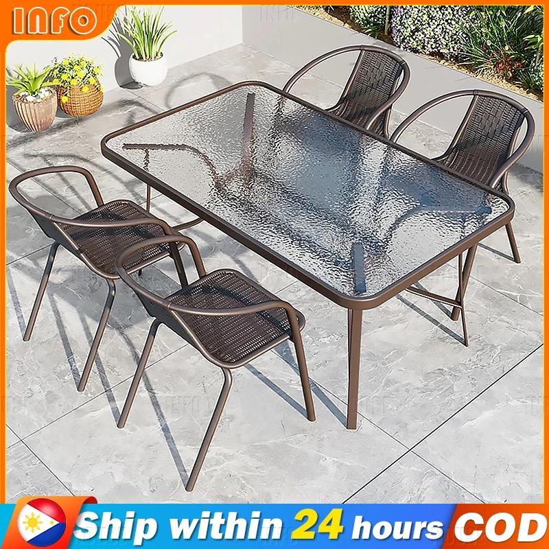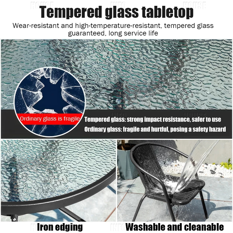 Outdoor glass table and chair set tempered glass table balcony small table leisure Outdoor table and chair