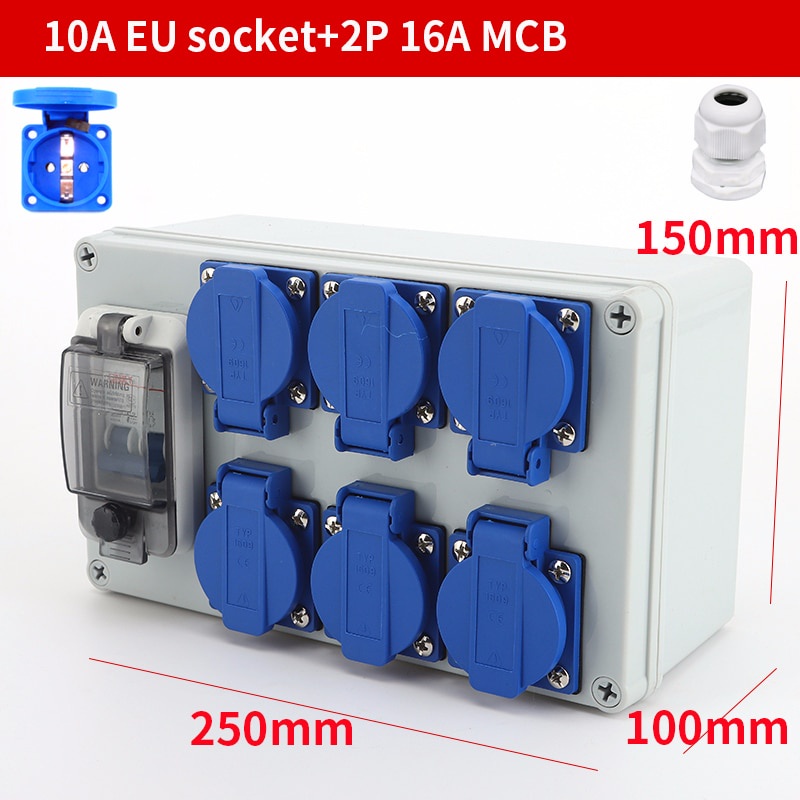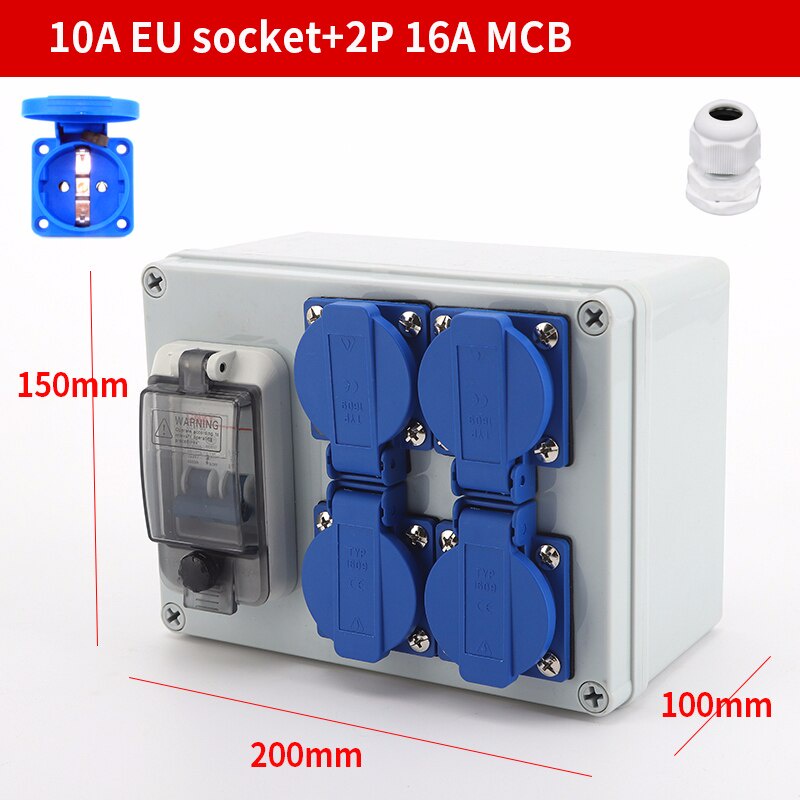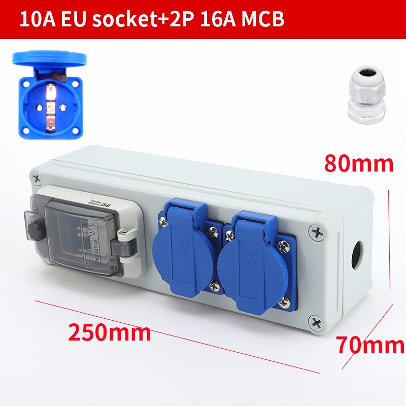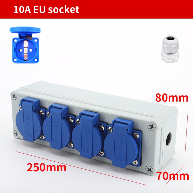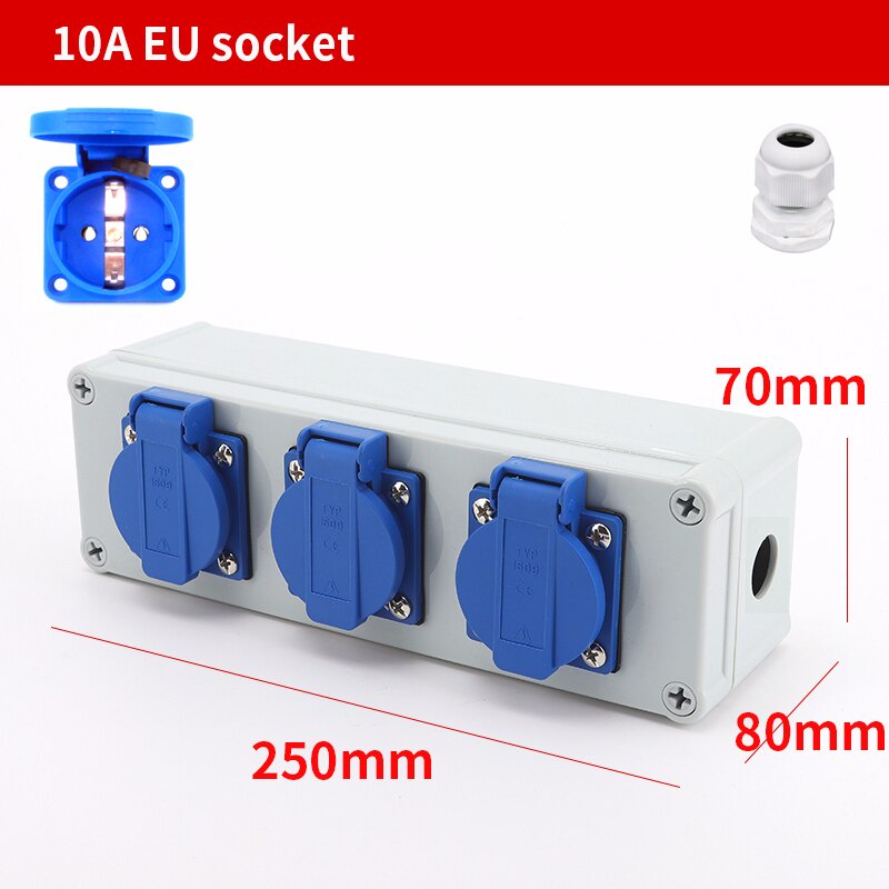 Outdoor rainwater socket Three holes 10A EU home wall mounted multi-function outdoor socket box electric car charging