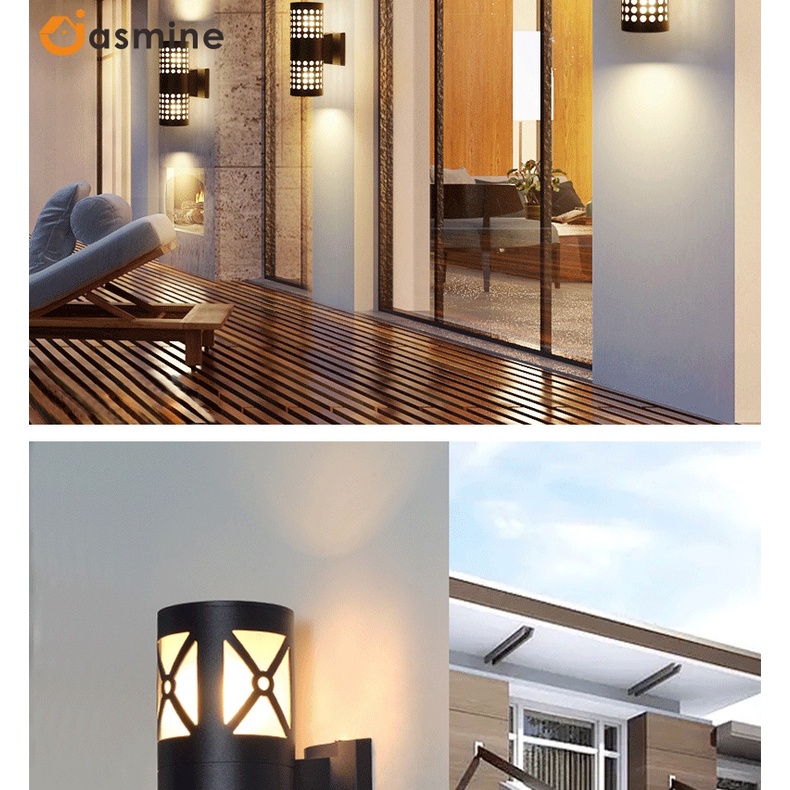 Outdoor wall lamp double round hollow transparent courtyard lamp outdoor waterproof exterior wall lamp E27 bulb aluminum tube