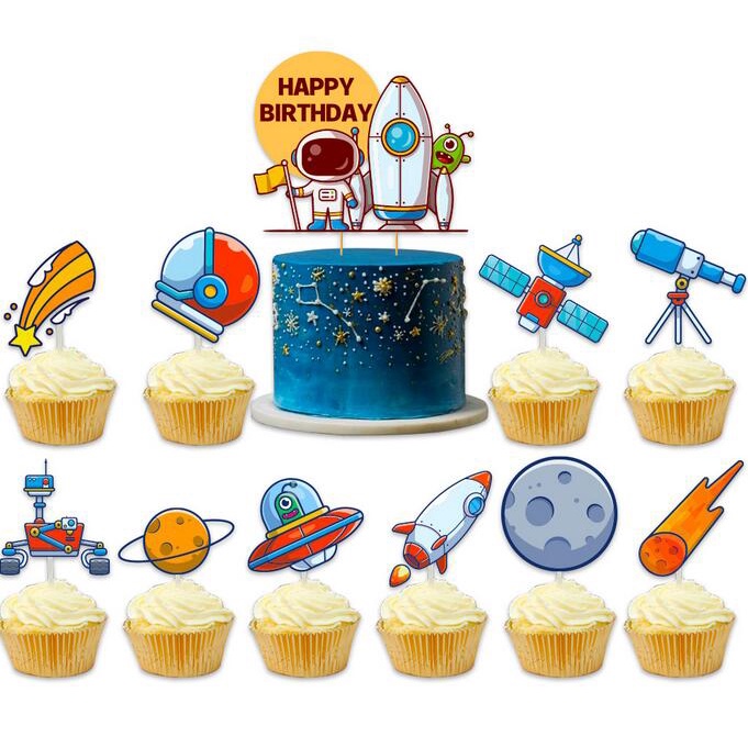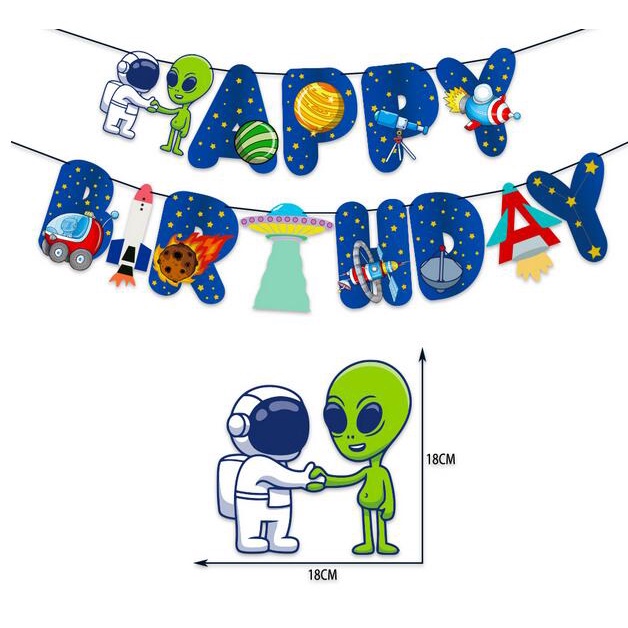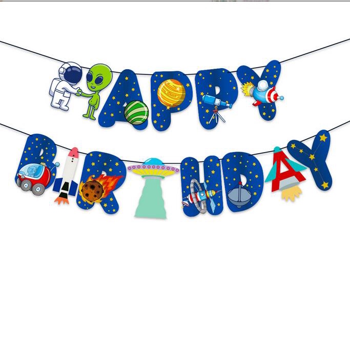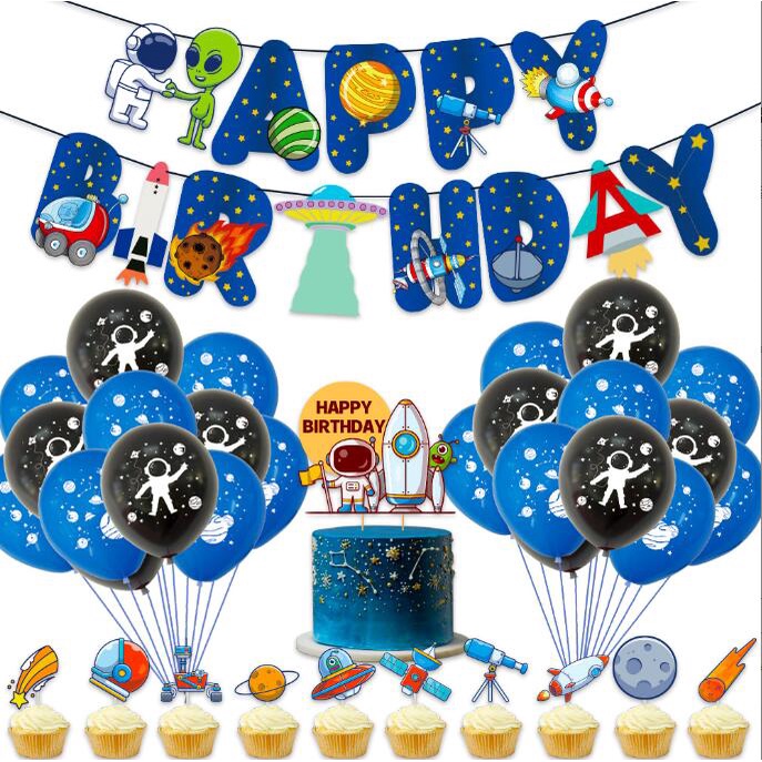 Outer Space Birthday Party Decoration Space Themed Party Balloons With Happy Birthday Banner space Balloon cake topper For Boys and girls Astronaut Birthday Party