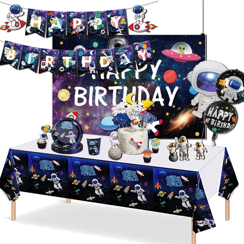 Outer Space Planet Theme Table Cloth Solar System Kids Birthday Party Supplies Disposable Tableware