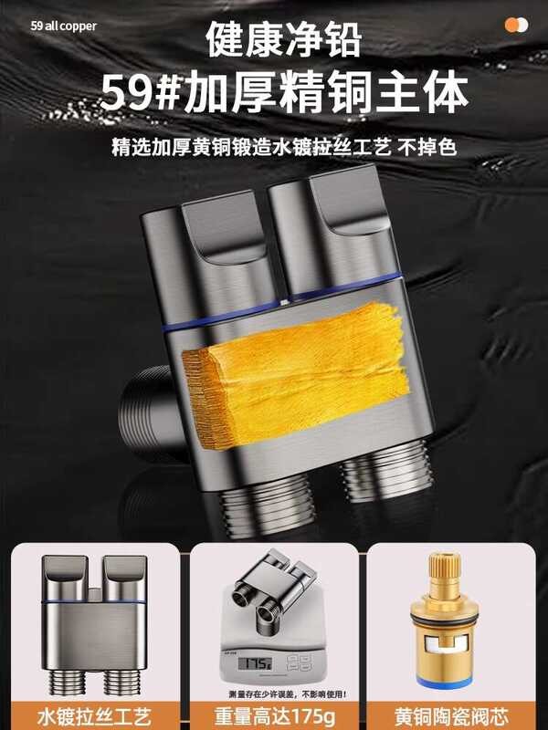 Outlet Washing Machine Angle One Inlet Two Outlets Special Copper Dual Faucet Automatic Water Stop