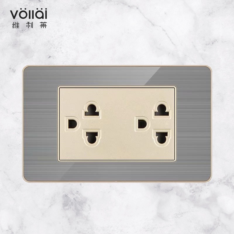 Outlet socket for wall 3/6 pin plug electrical socket outlet15amp philippines modern wall socket outlet stainless steel panel board 2 gang power multiple outlets port with cover 118 type 220V socket and outlet for house