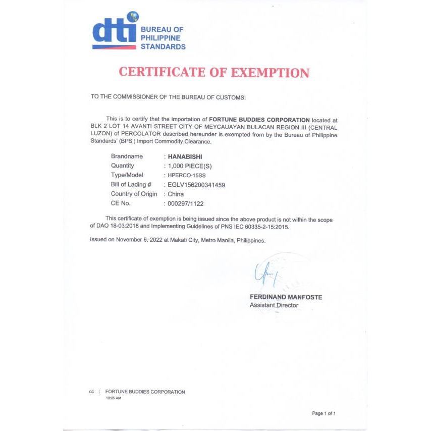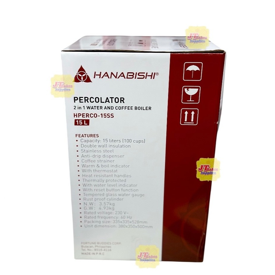 Hanabishi Percolator 15 Liters HPERCO-15SS 2in1 Water and Coffee Boiler with Freebie