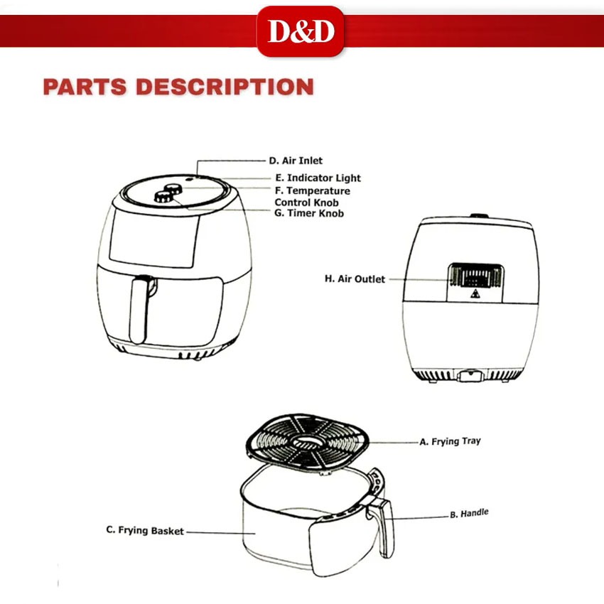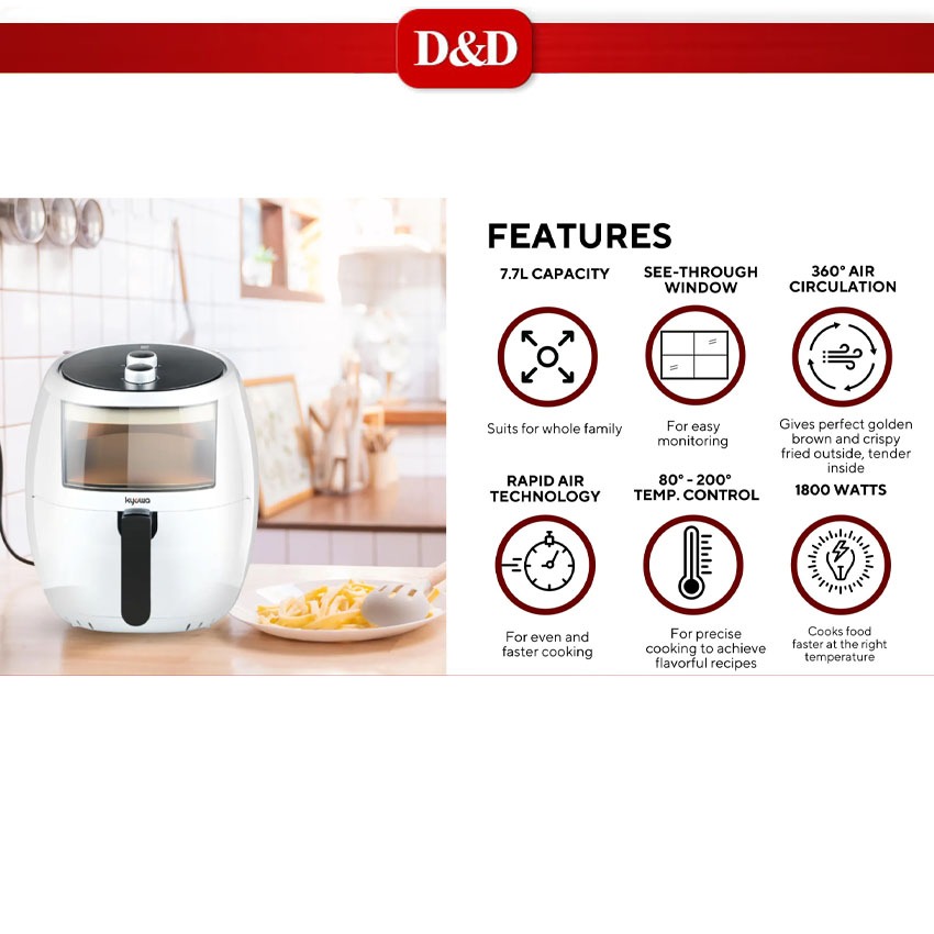 D&D I Kyowa (KW-3820) Air Fryer with See-through Window 7.7 Liters