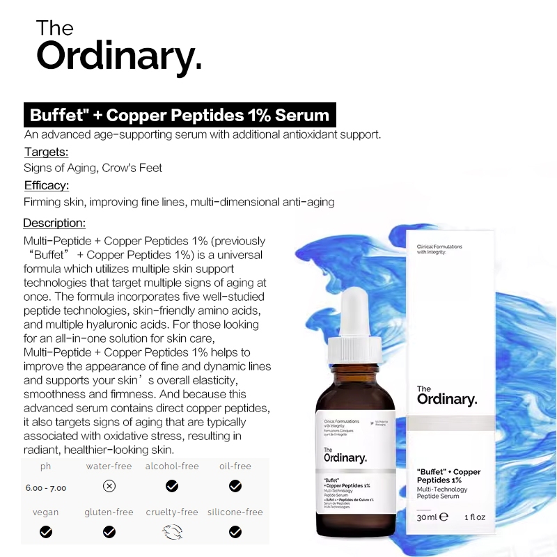 The Ordinary Buffet+Copper Peptides 1% Fade fine lines Anti aging Anti wrinkle Shrink pores serum