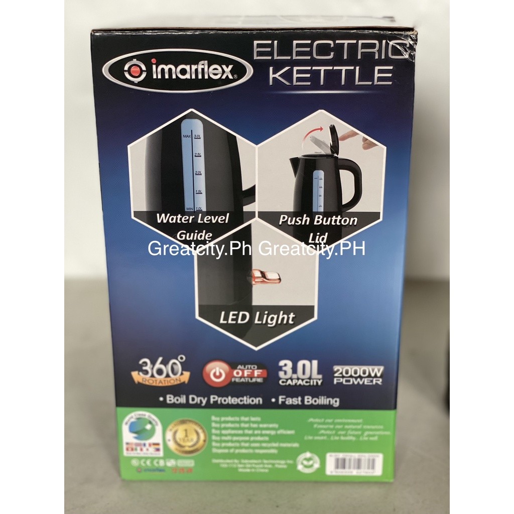 Imarflex Electric Kettle Heater 3 Liters Hot Water Boiler IK-301 Black