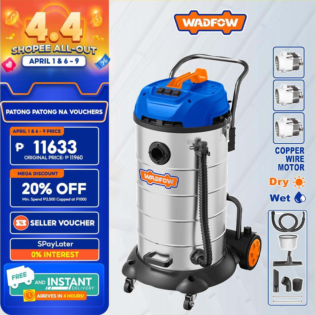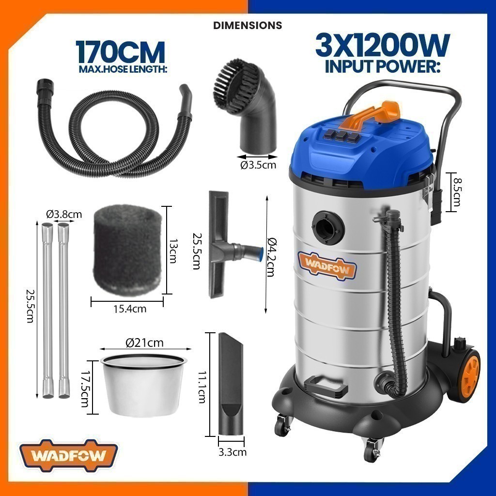 WADFOW 3600W Wet & Dry Vacuum Cleaner 90L Capacity Household Floor Cleaning Tools WVR5A90 (WPT)