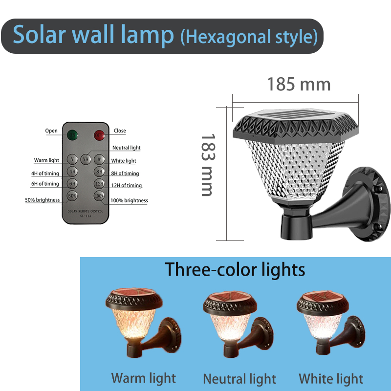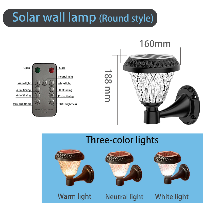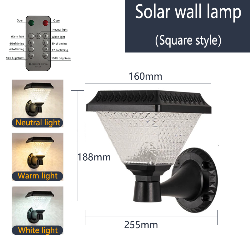 Outside Solar Wall Lamp Remote Control Three-Color Wall Lamps Waterproof Wall Light For Balcony Entrance Aisle Stairs Courtyard Decorative Lighting