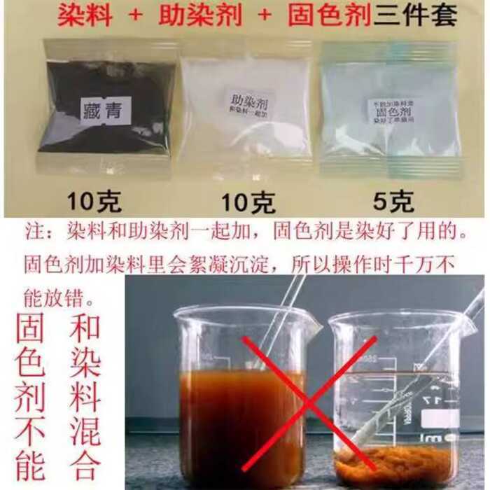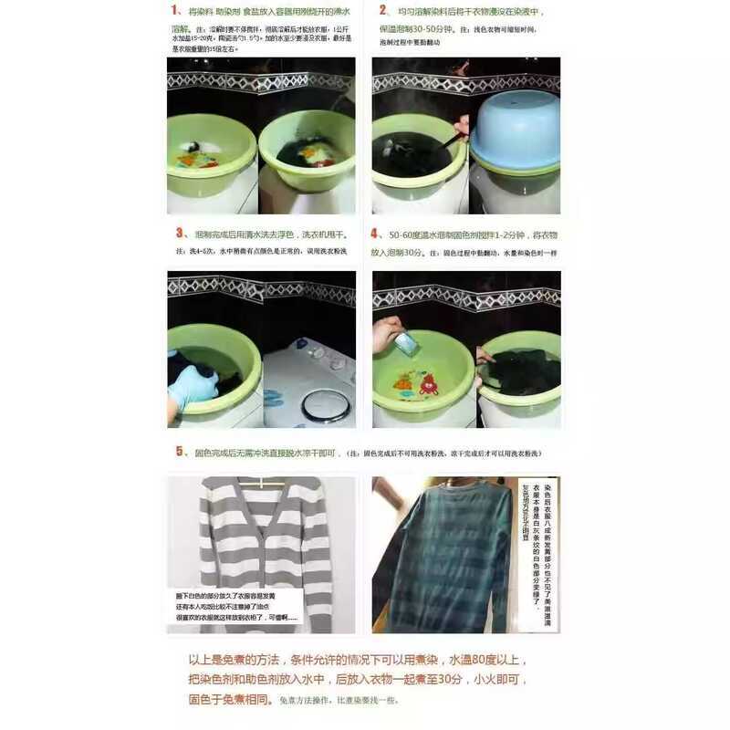 Pigment dye black hair dye, orange color change for clothes, white textile liquid, direct denim blue